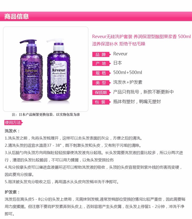 【保税仓】Reveur 头皮护理 紫色 无硅洗发水护发素套装 500ml*2