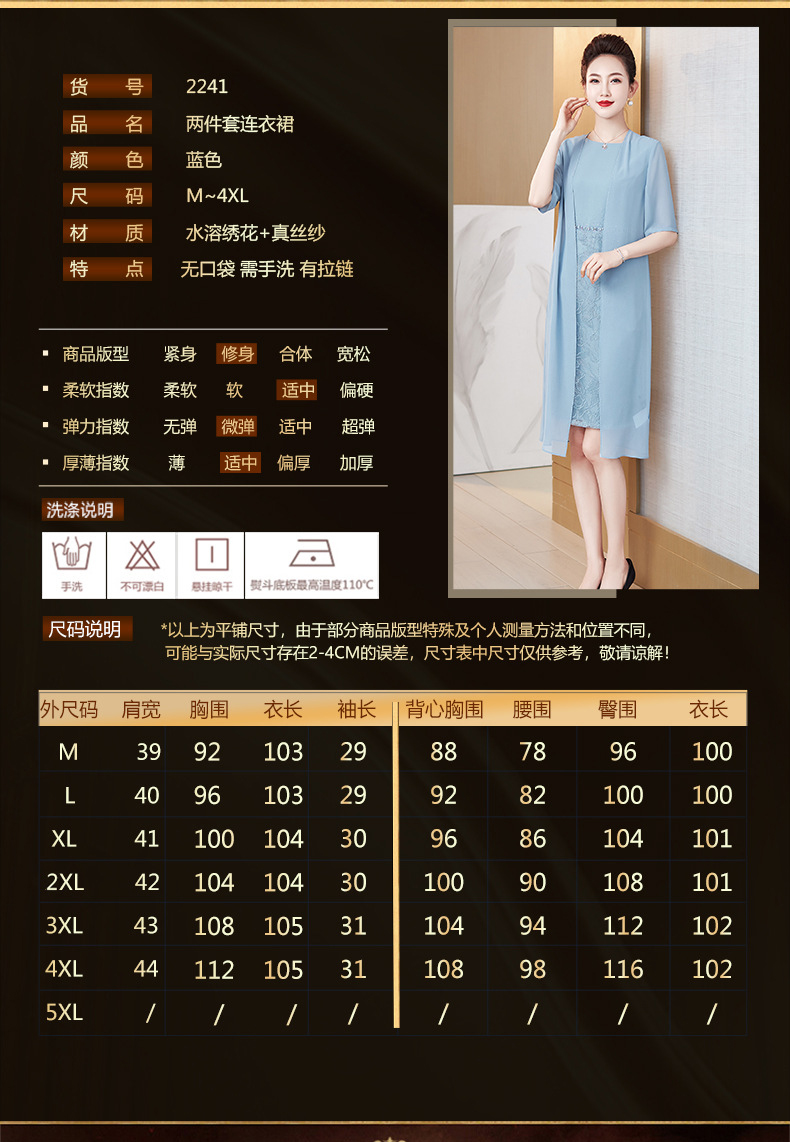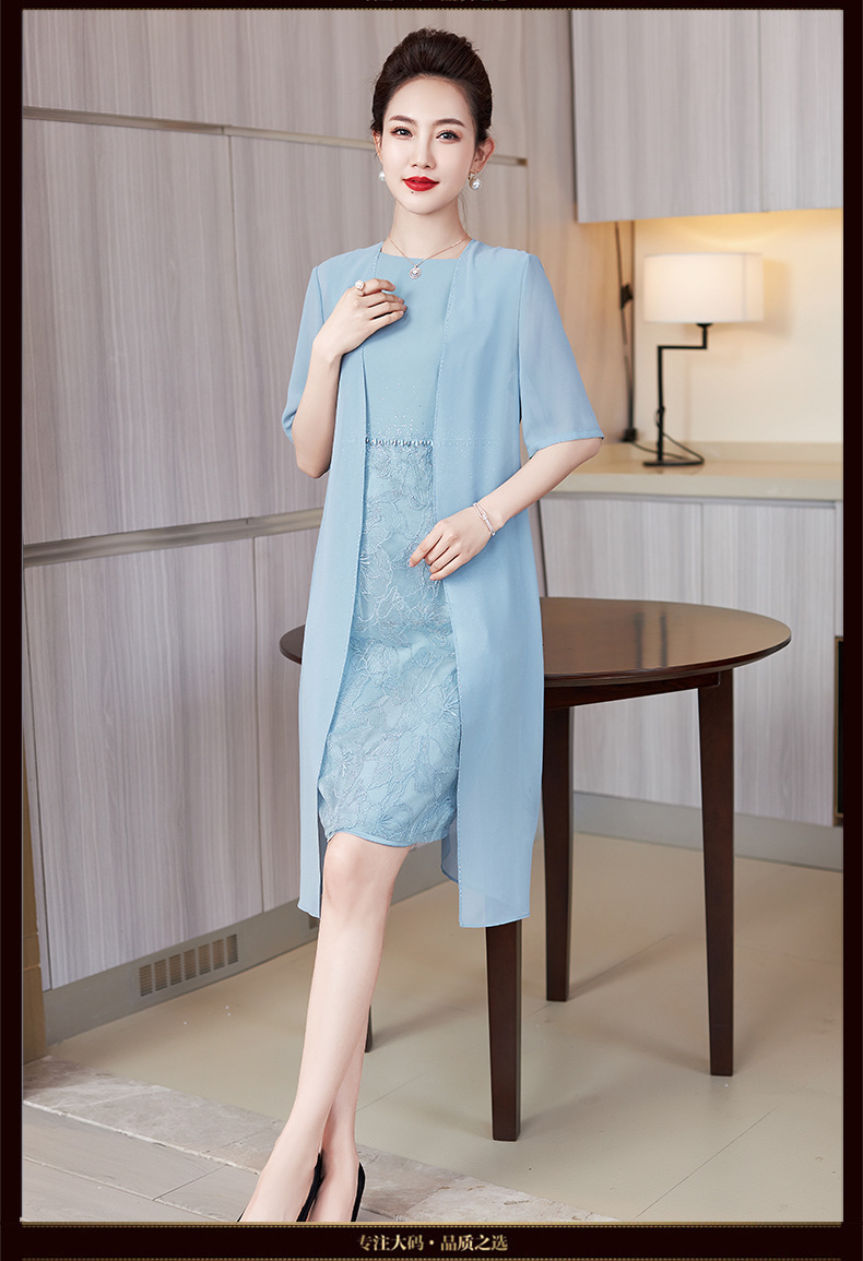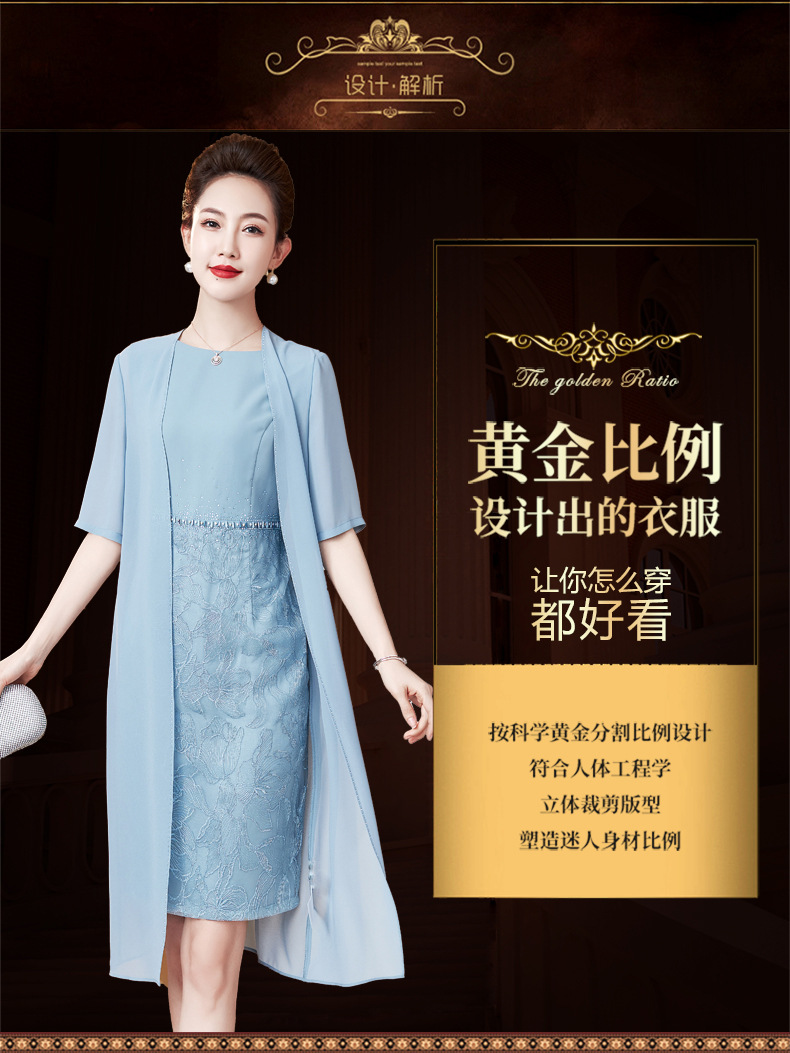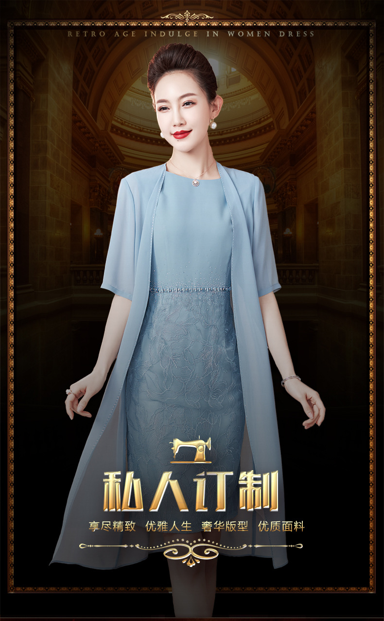婚宴装妈妈结婚套装礼服2022新款时尚平时可穿两件套高贵连衣裙夏 LC2241