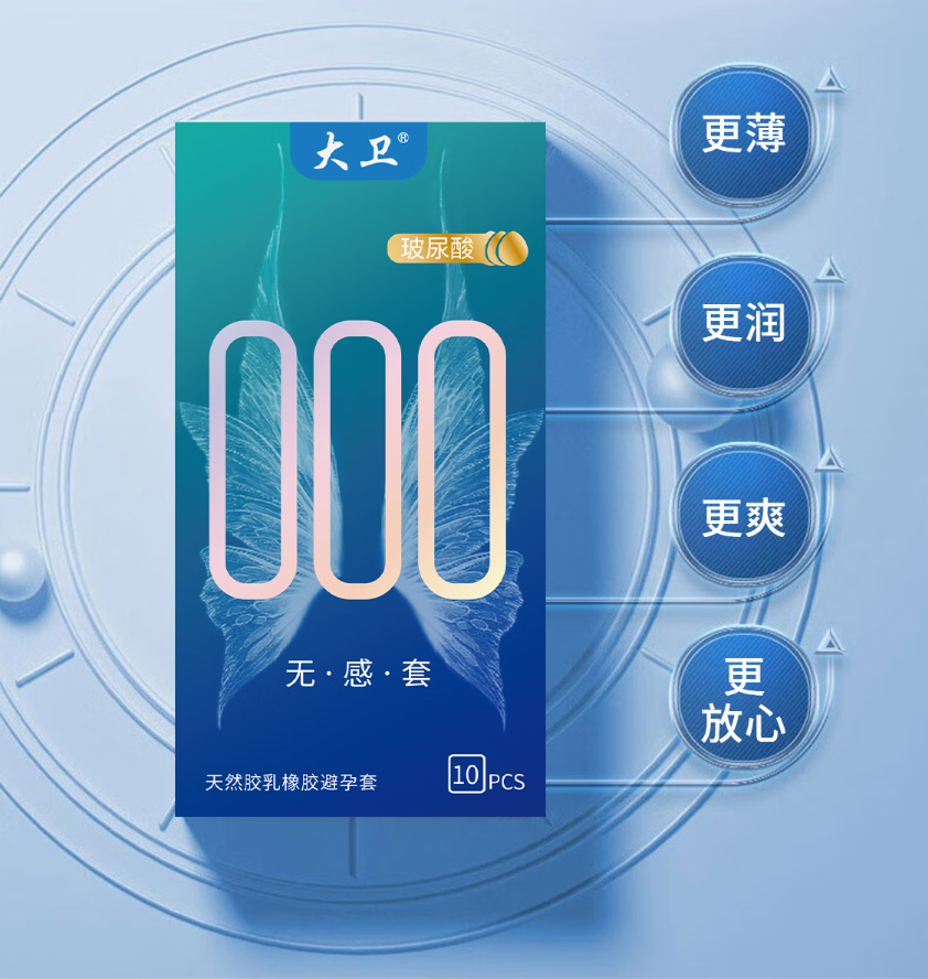 大卫 避孕套超薄男专用持久安全套 玻尿酸套套000无感润滑套子避孕套男女夫妻成人计生情趣性用品10只