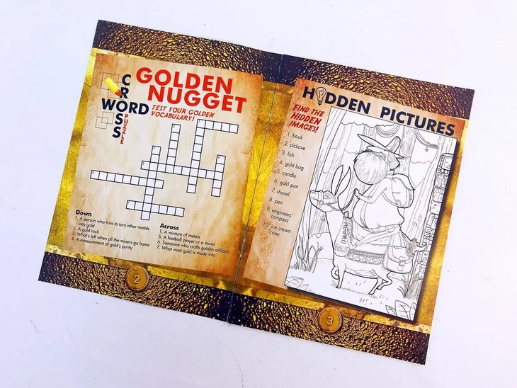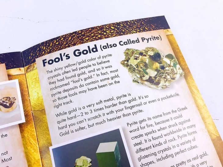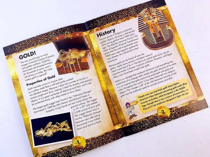 像在开挖之前,先带着娃学习一下黄金的定义,书上依次介绍了“GOLD(黄金)”、“Properties of Gold(黄金的特性)”、“History(历史)”、“Uses for Gold(黄金的用途)”,有了一定的概念基础,孩子挖的时候也会更加有好奇心和探索精神。