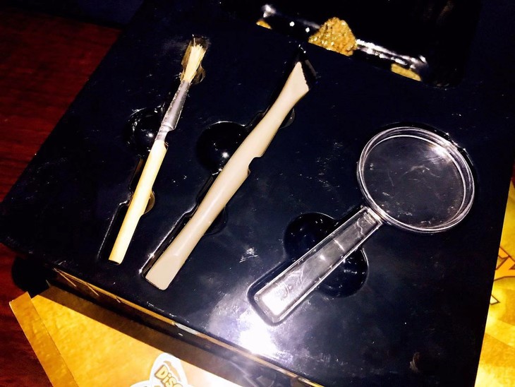 当然啦,DC挖掘系列的小道具也基本都给我们标配齐了。小刷子、刮刀、放大镜,打开盒子就能直接开挖,只是这样好看的挖掘砖,强迫症都不忍心破坏它,纠结好一会儿才忍心下手。