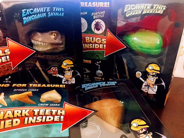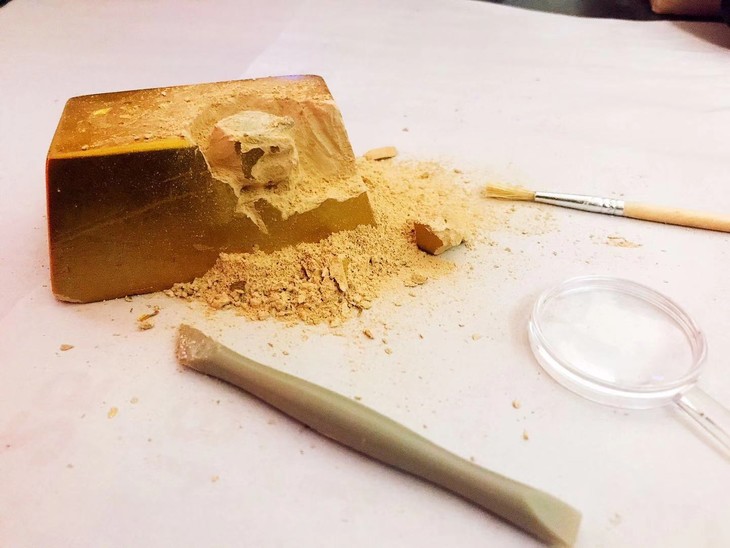 而自己带娃玩下来最直观的感受是:相比于市面上其他挖掘玩具可能都是塑料模型,或者是人造后期合成的;而它挖出来的,是真的化石、黄金、标本、牙齿等等。