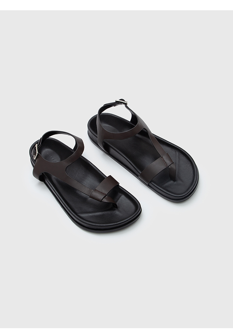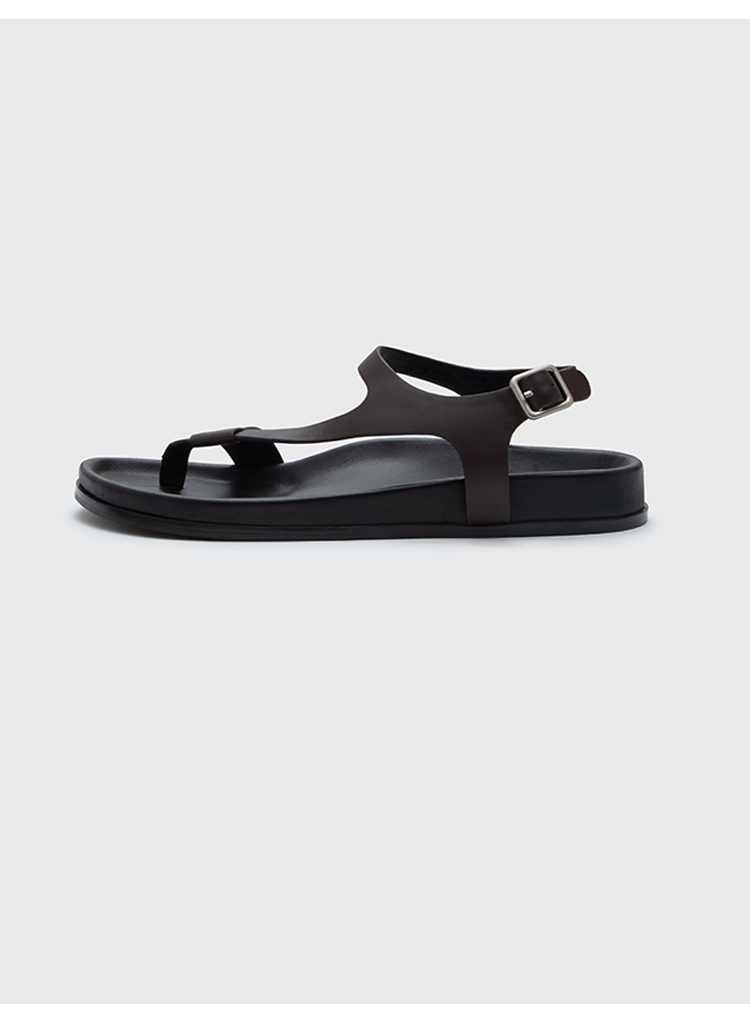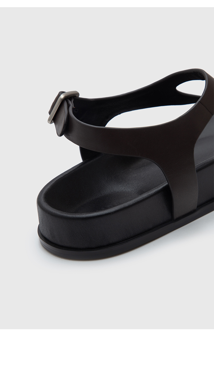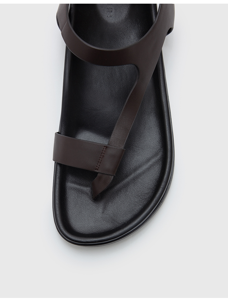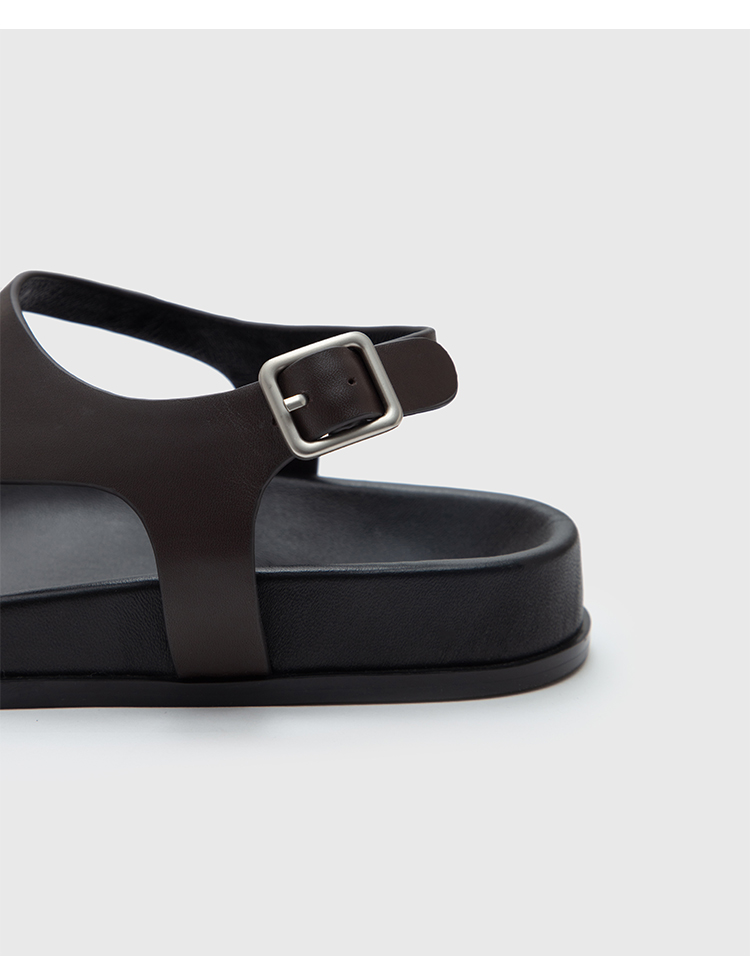 HIDEMI 极简夹脚设计感牛皮乌木棕厚底凉鞋