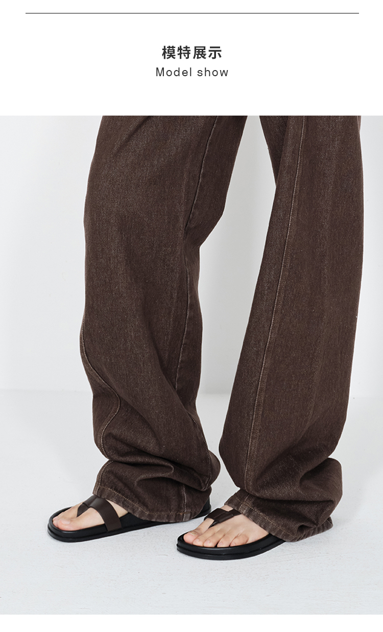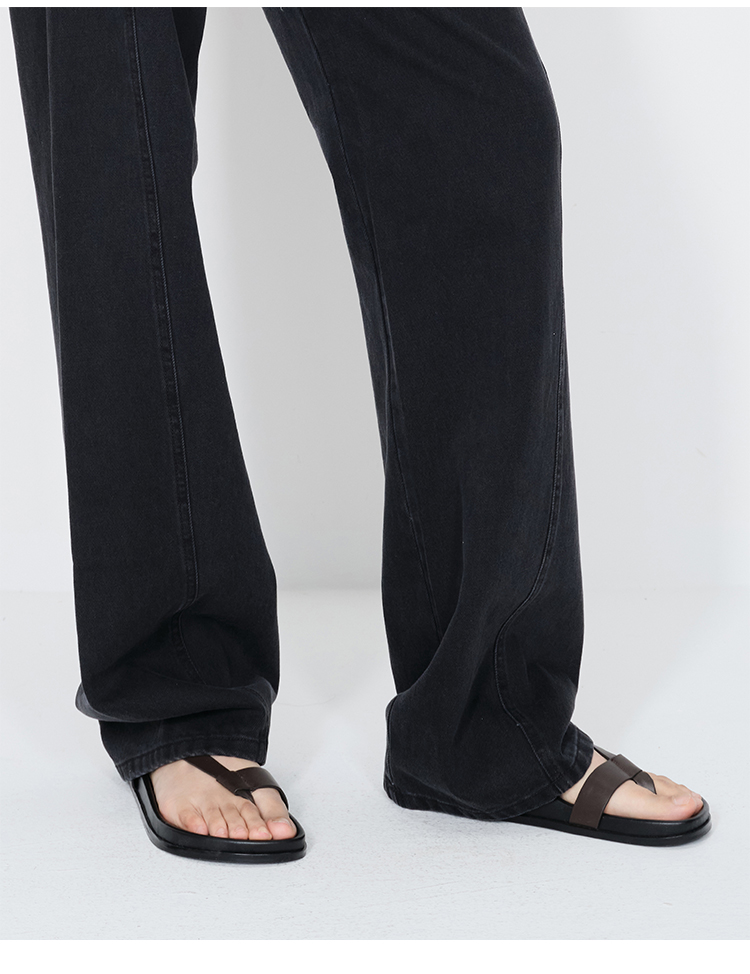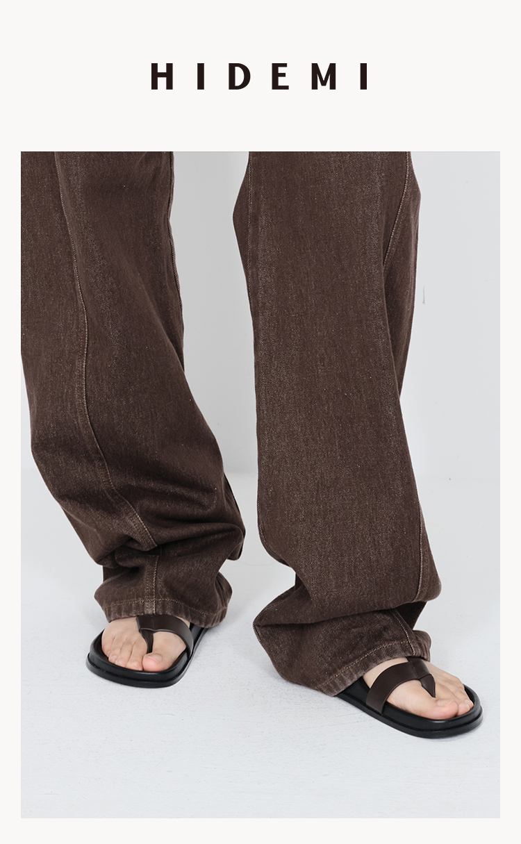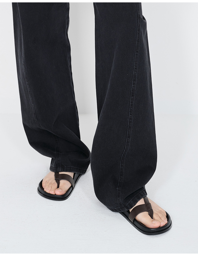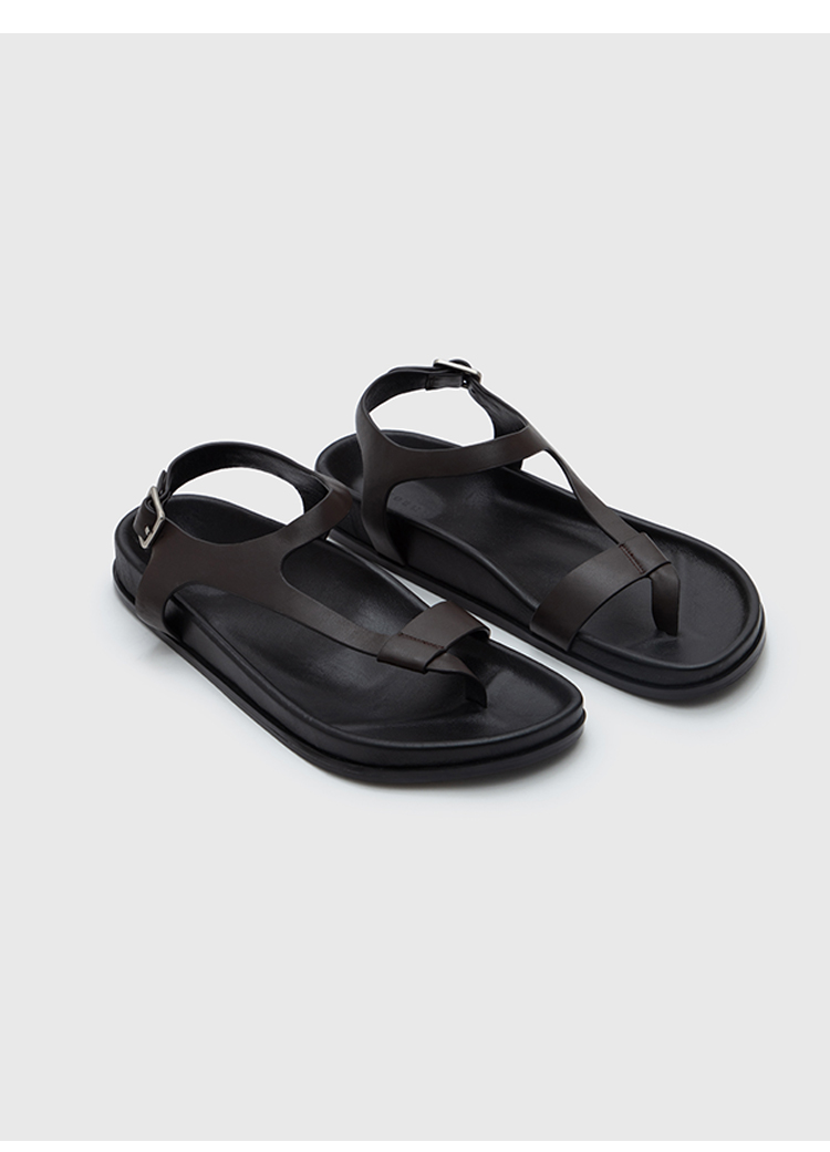 HIDEMI 极简夹脚设计感牛皮乌木棕厚底凉鞋