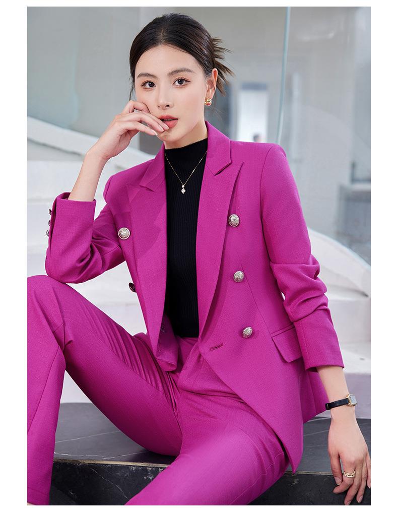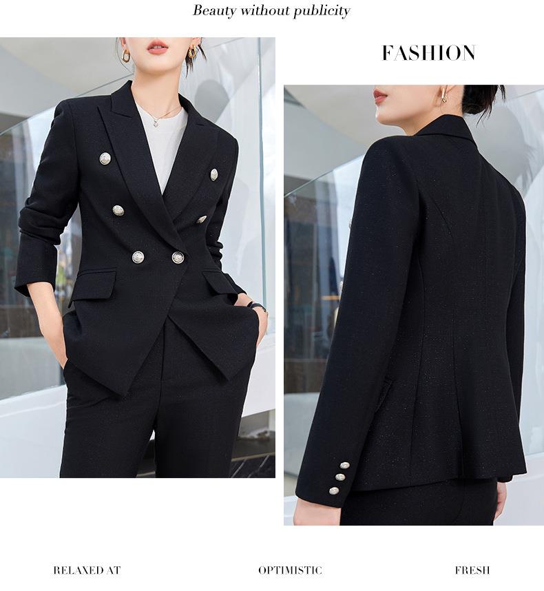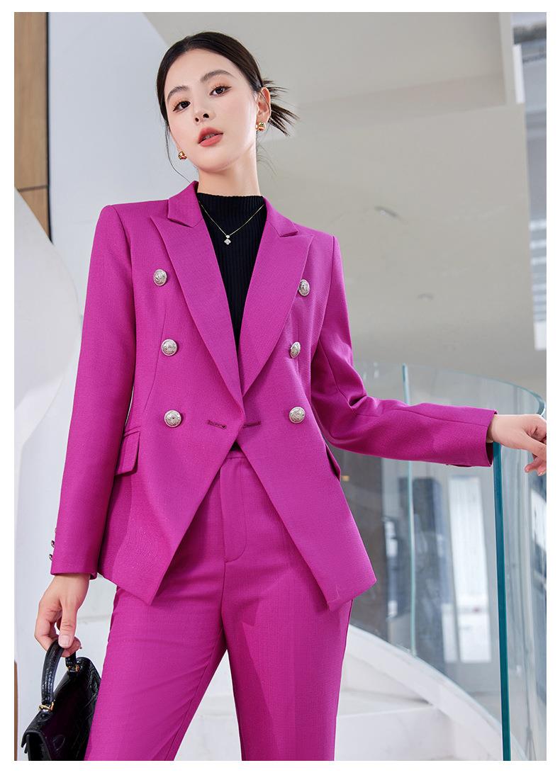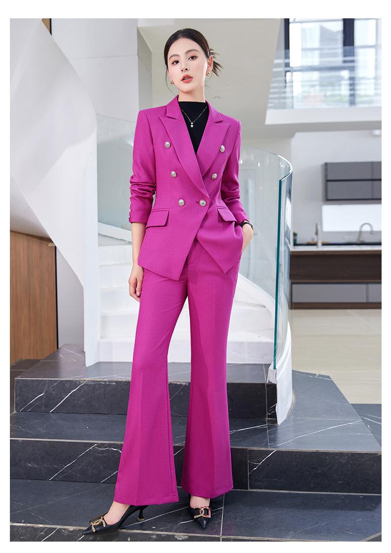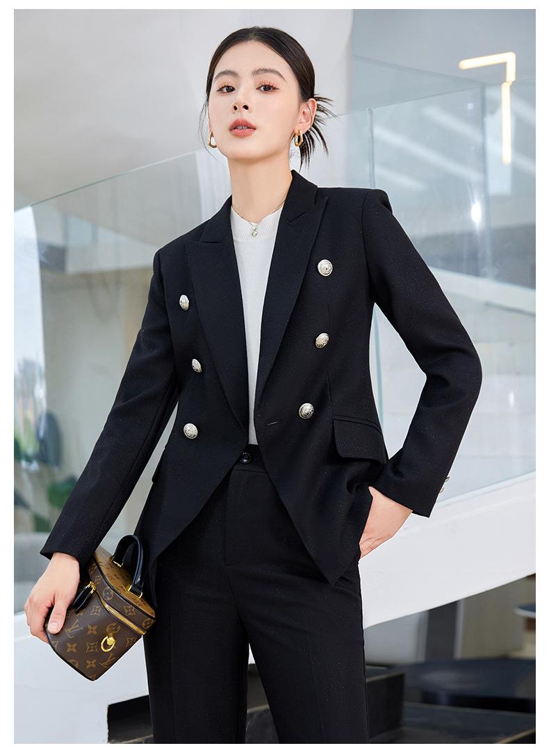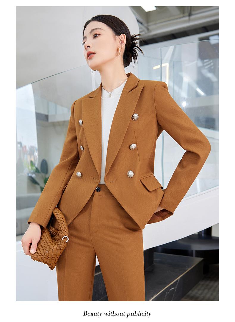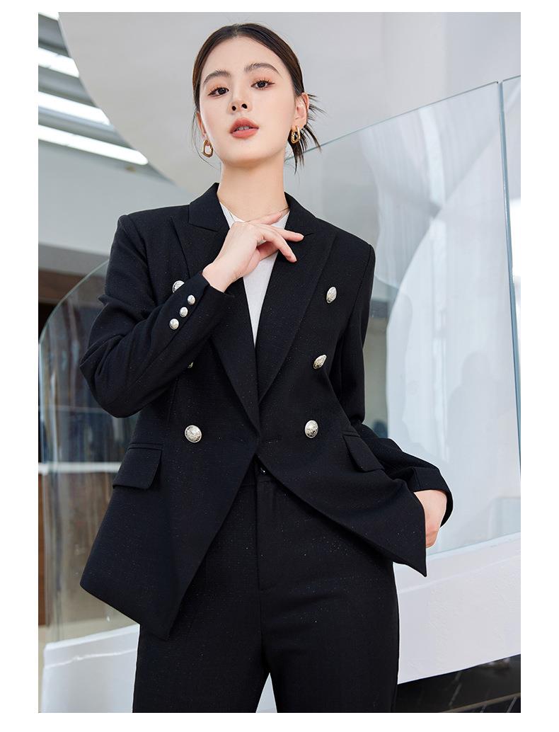 娜璐多 英伦风双排扣小西服+微叭裤两件套时尚百搭西装套装通勤2023秋款
