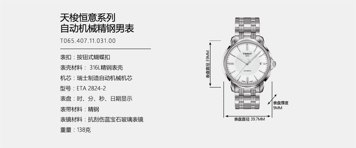 | 品牌 | 天梭 TISSOT | 型号 | T065.407.11.031.00 |