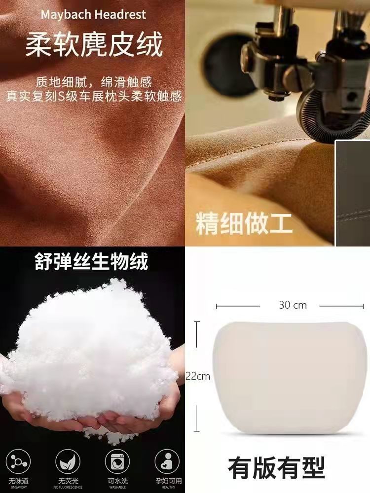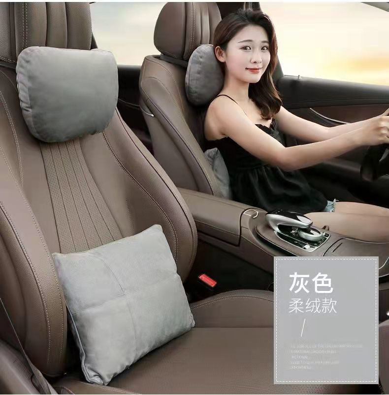 车米兜汽车头枕车用麂皮绒护颈枕汽车靠枕护颈枕通用车用座椅头枕