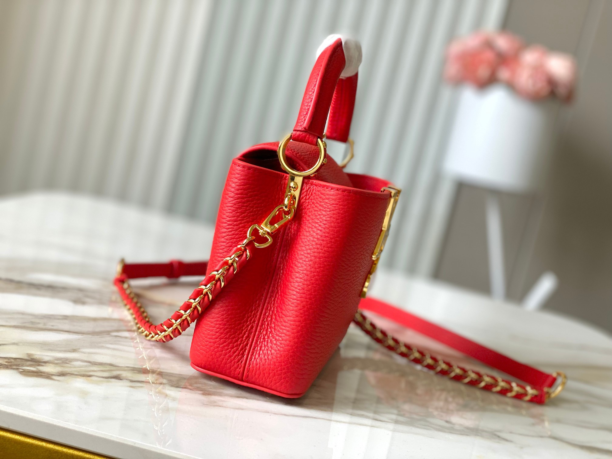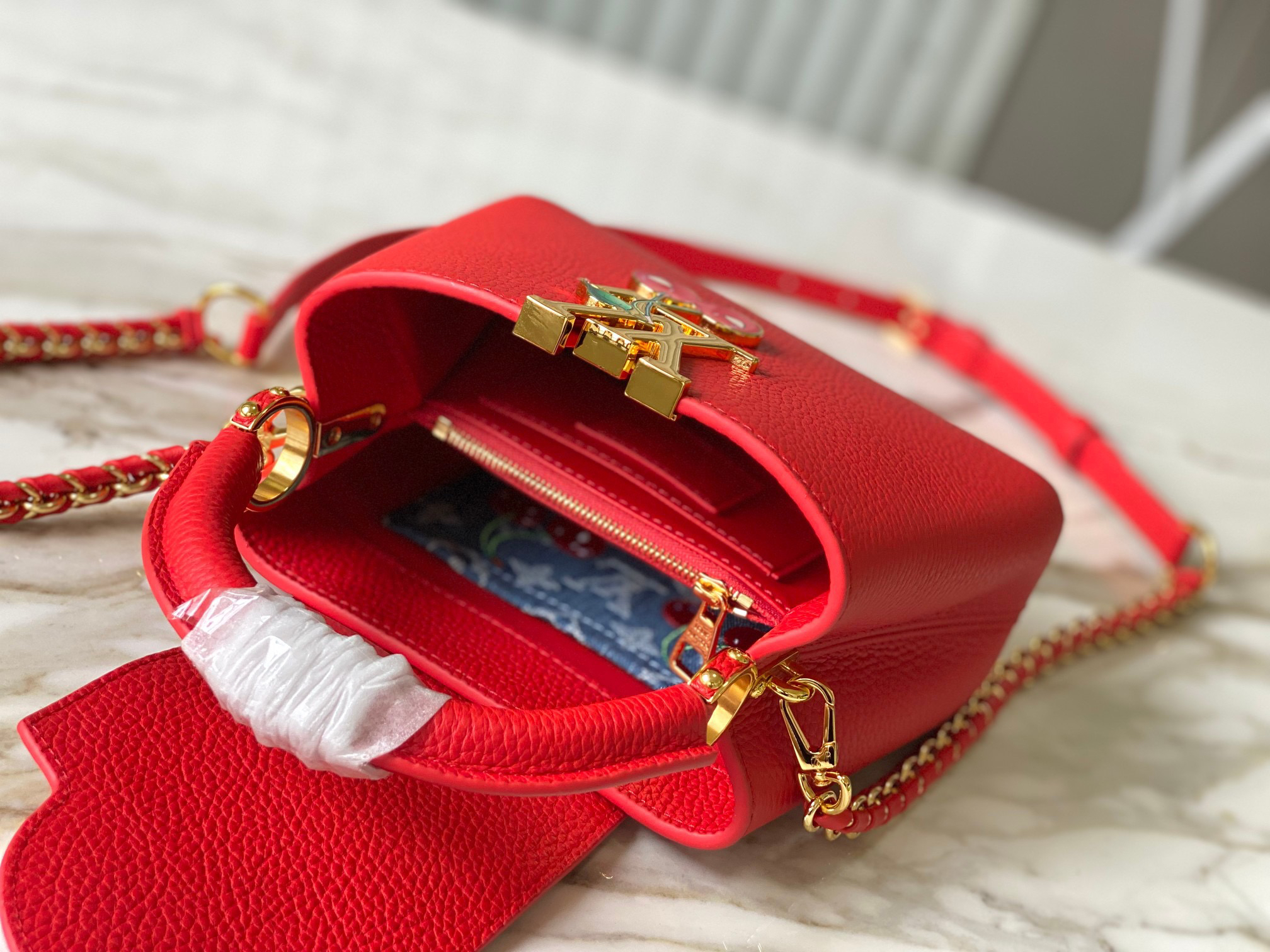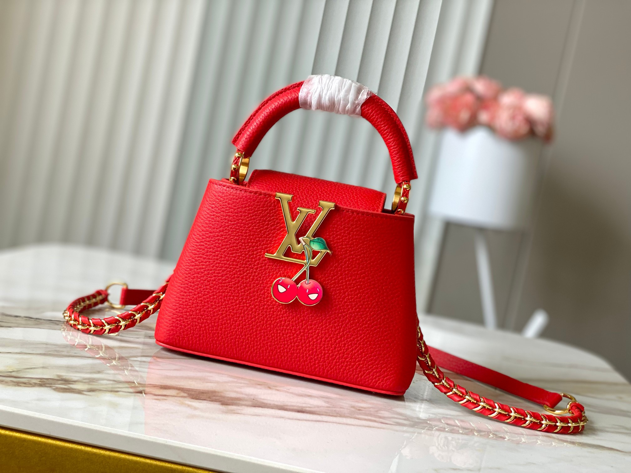 秋冬特惠💰1600 渠道级LV 新品 te级LV 动态芯片 M13250/M48865红樱桃拼金扣链条 本款Capucines手袋