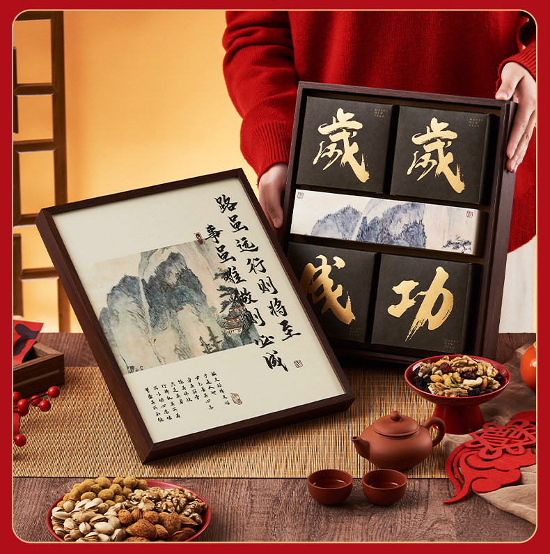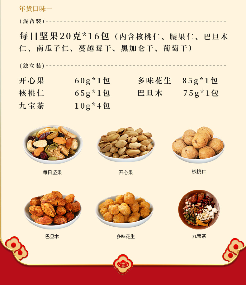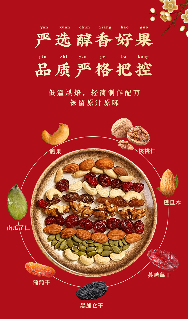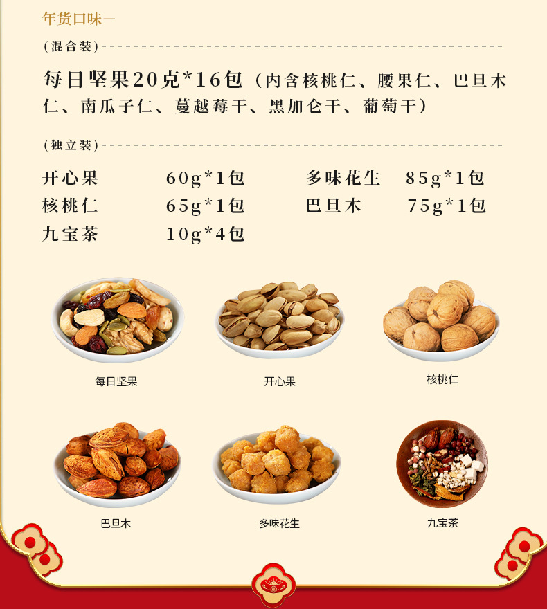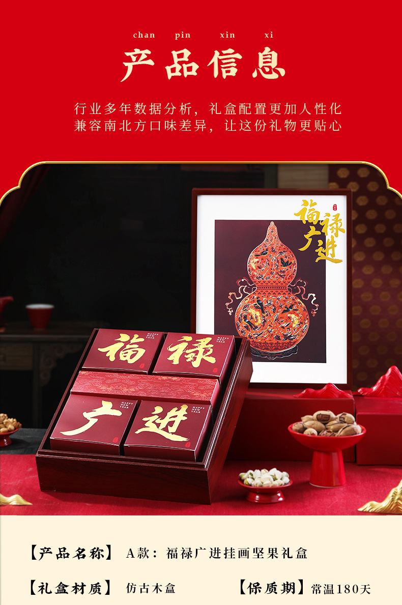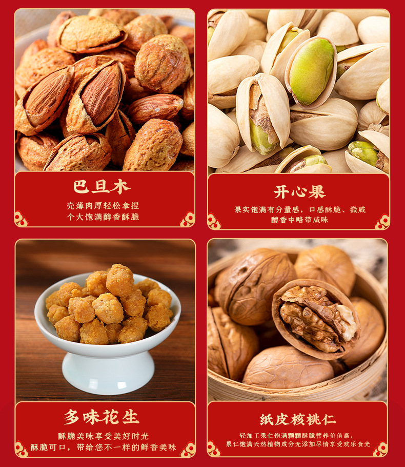 觅食严选【南三府福禄广进/岁岁成功坚果礼盒】核桃仁、腰果仁、巴旦木、南瓜子仁、蔓越莓干、黑加仑干、葡萄干、开心果、九宝茶叶、多味花生春节坚果礼盒 全家福礼盒 -52