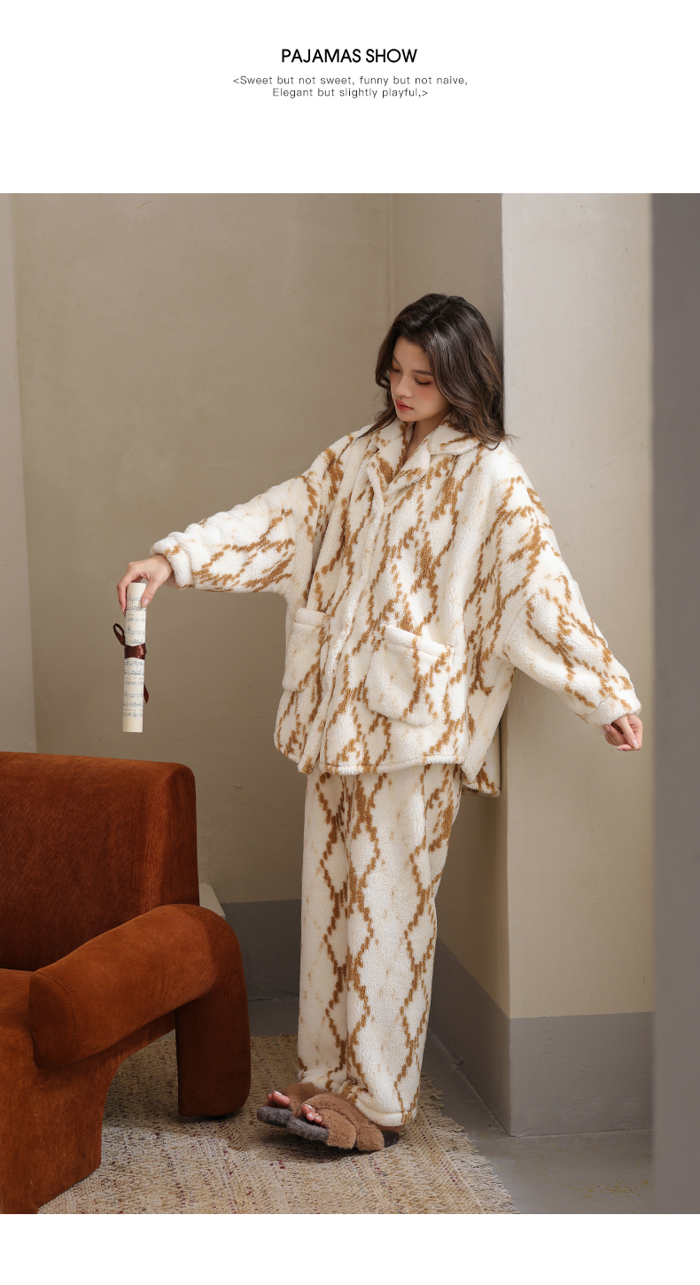 可人儿原创冬季舒棉绒女士睡衣韩系加厚保暖可外穿珊瑚绒家居服