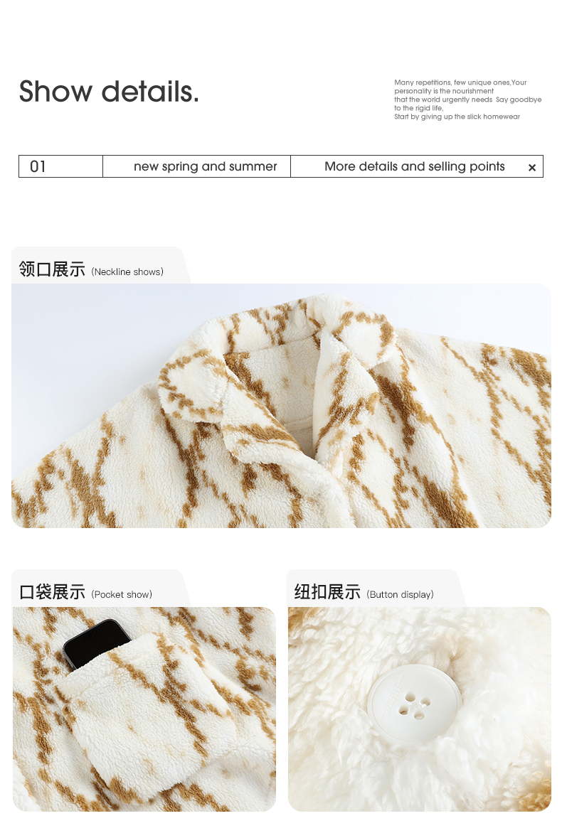可人儿小众设计师新款奥力绵女士睡衣春秋长袖时尚可外出家居服