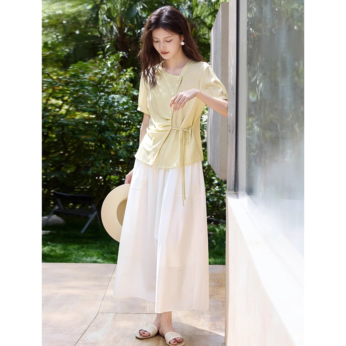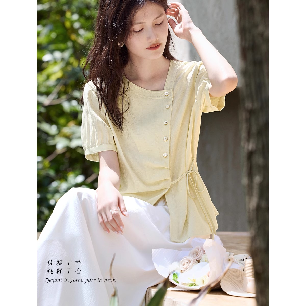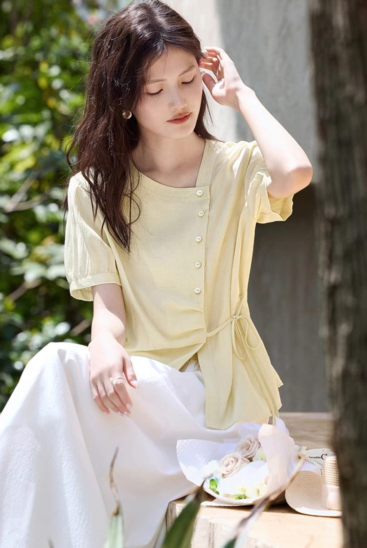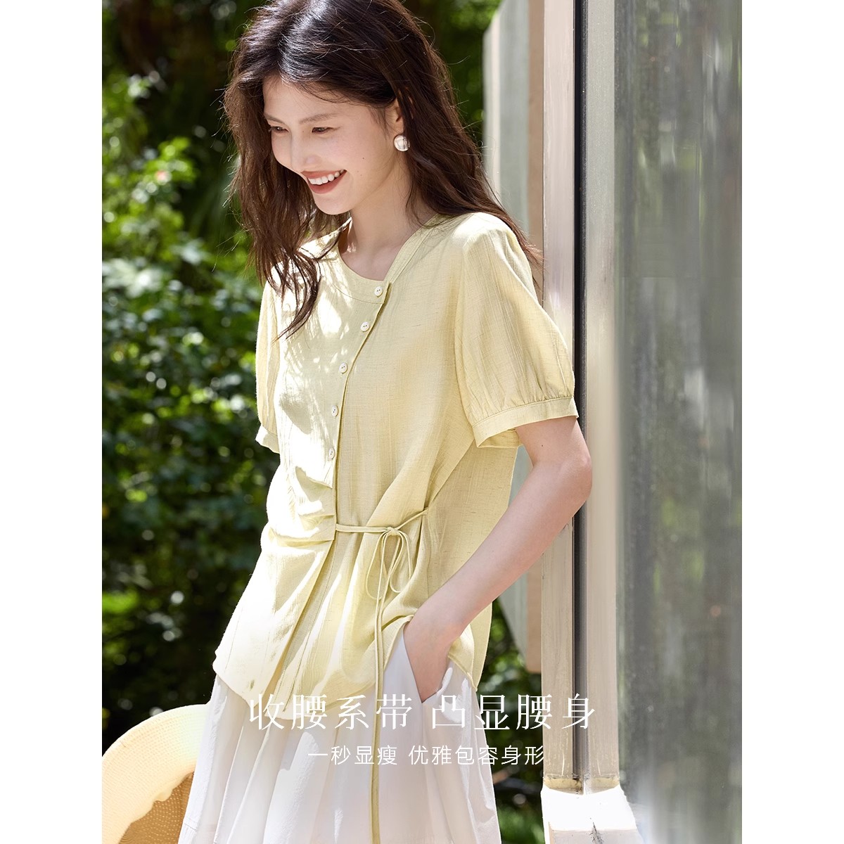 肌理显瘦系带衬衫