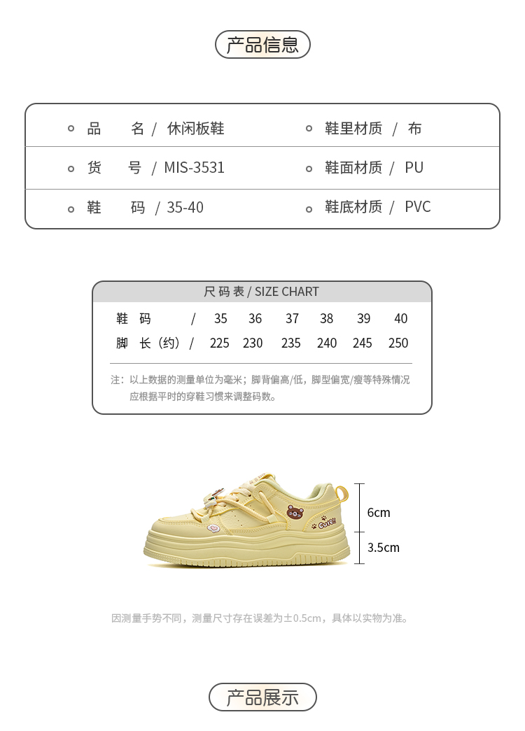 【YW】无忧购25年春季韩系卡通小清新百搭小众休闲板鞋MIS-3531(截单后7天发货)