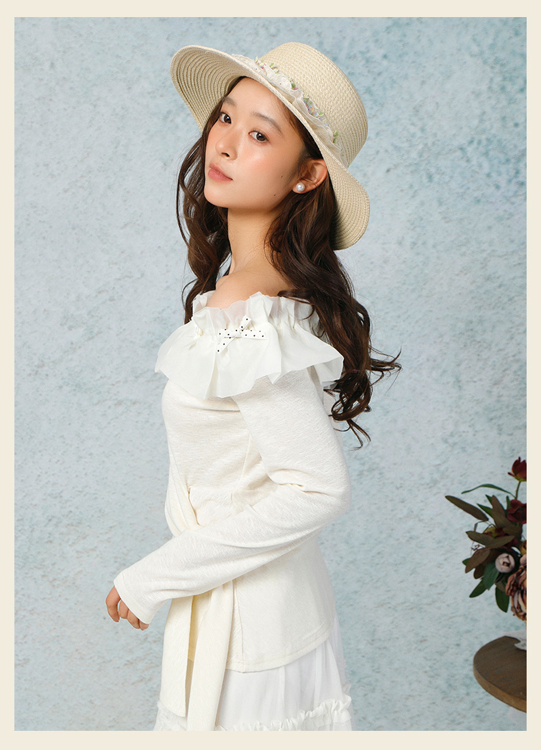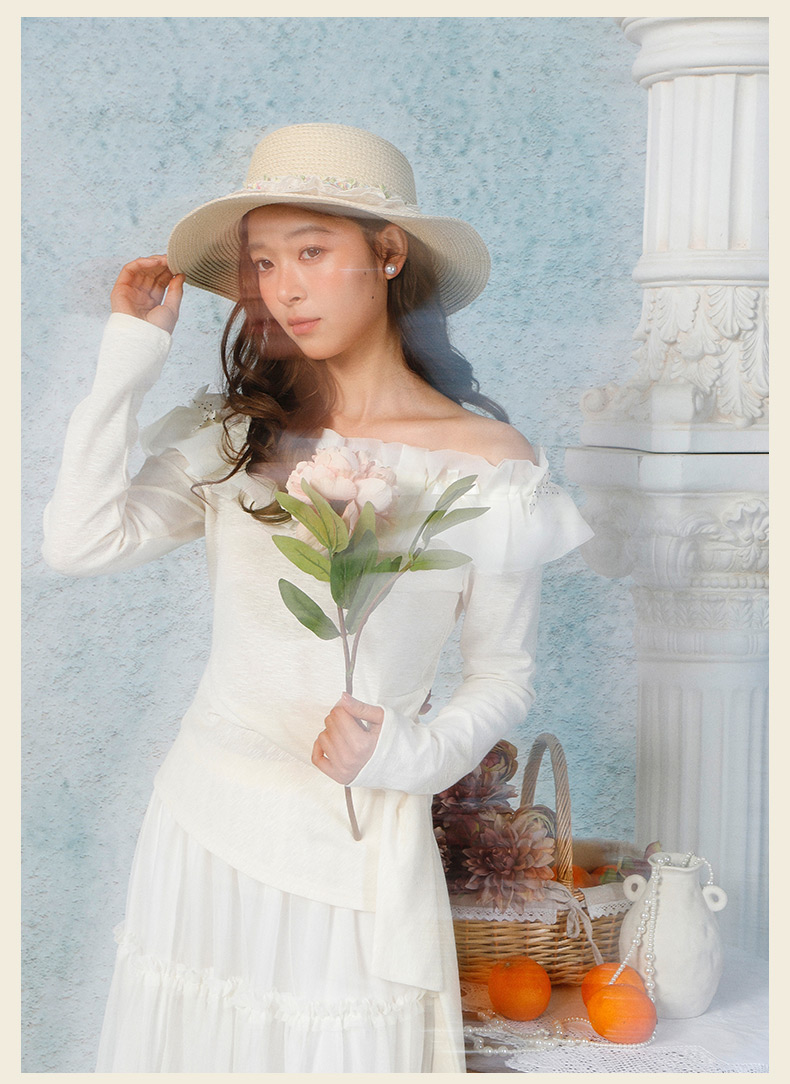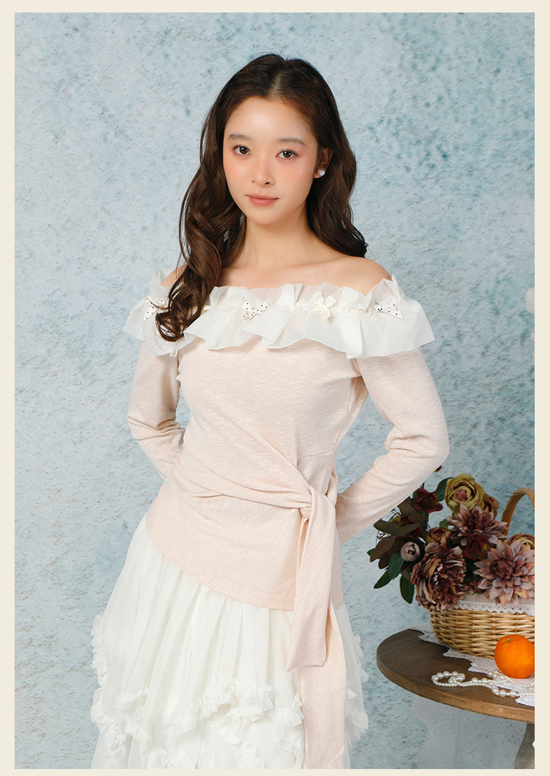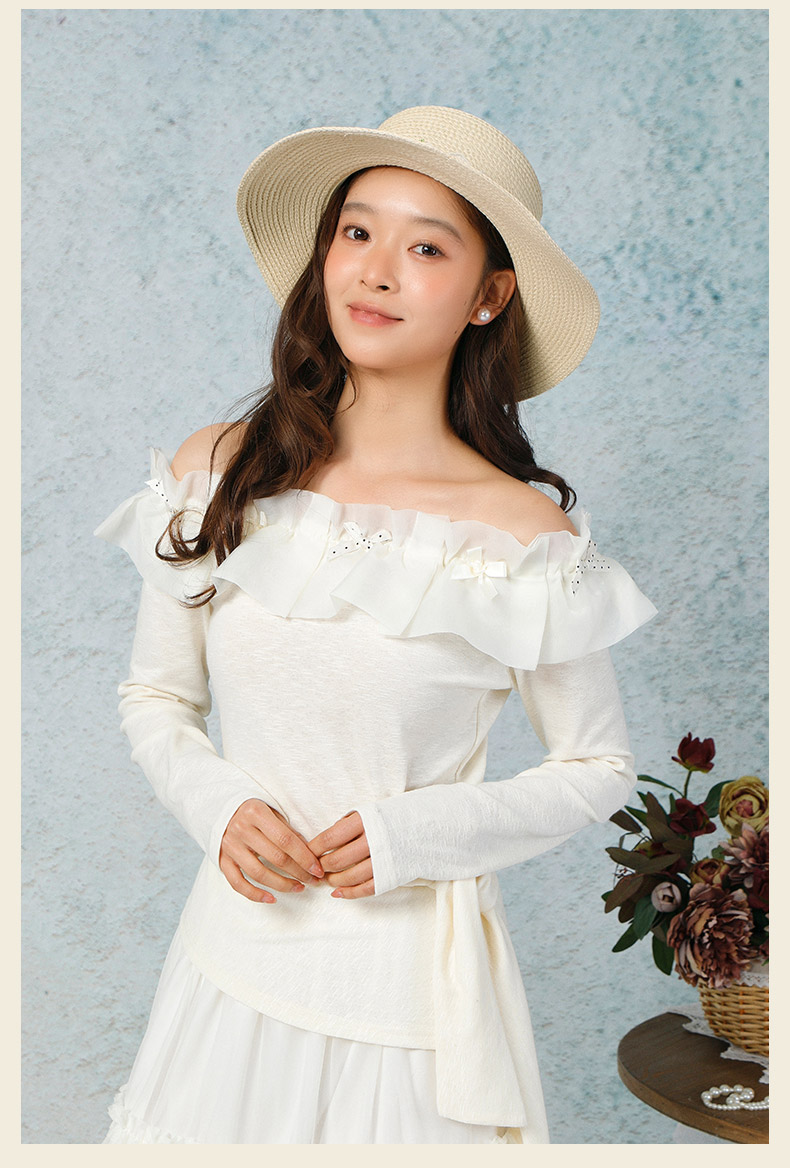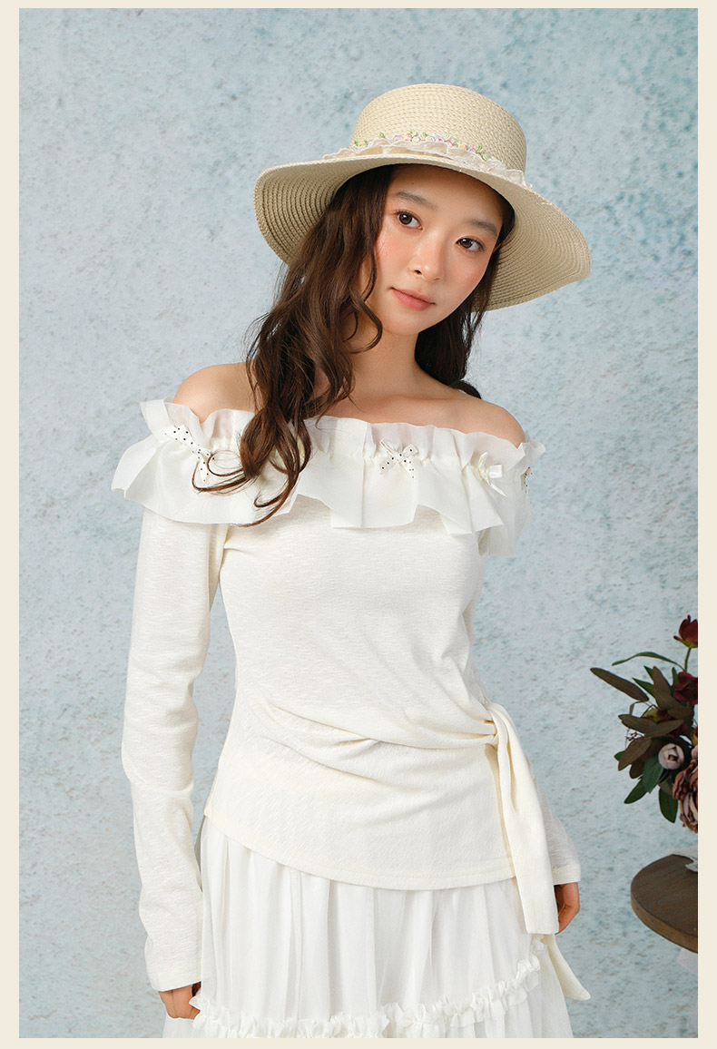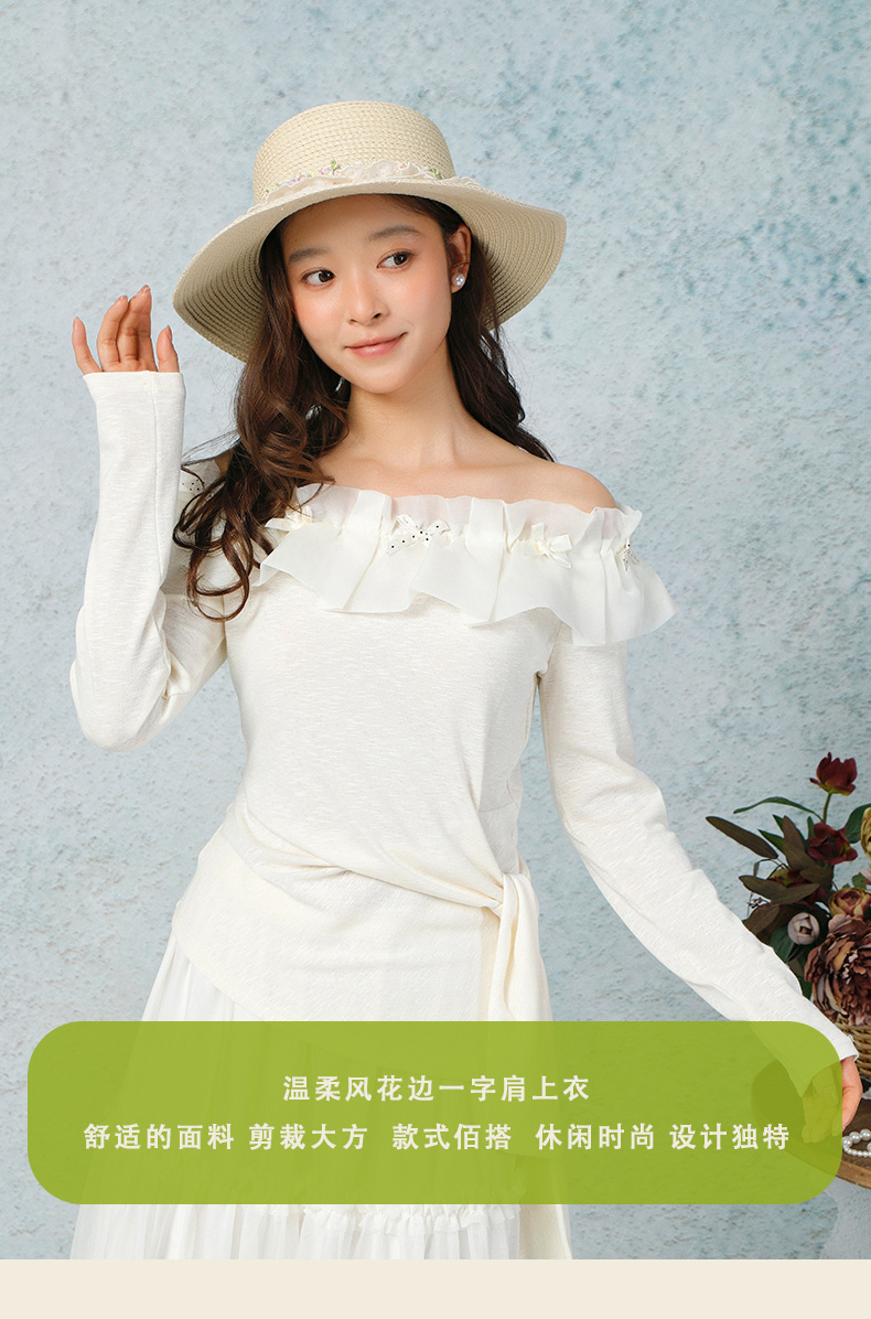 气质时尚温柔风花边一字肩上衣-纪念日百货门店同款169265979