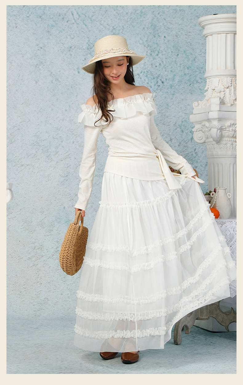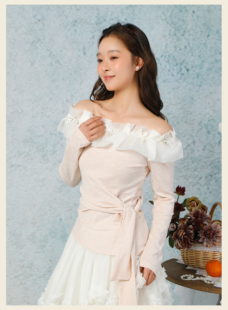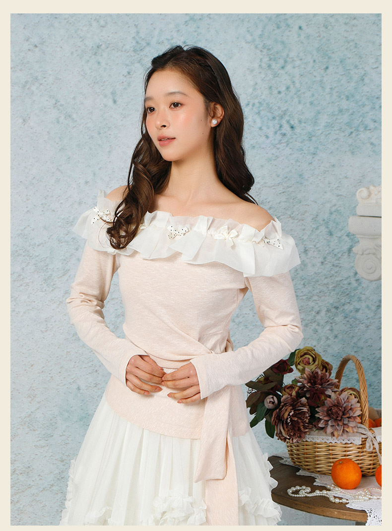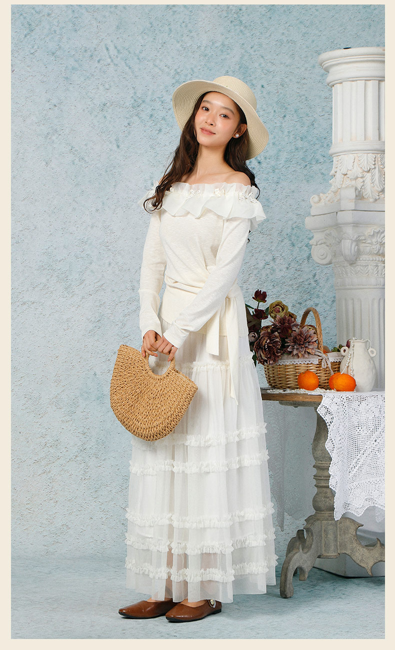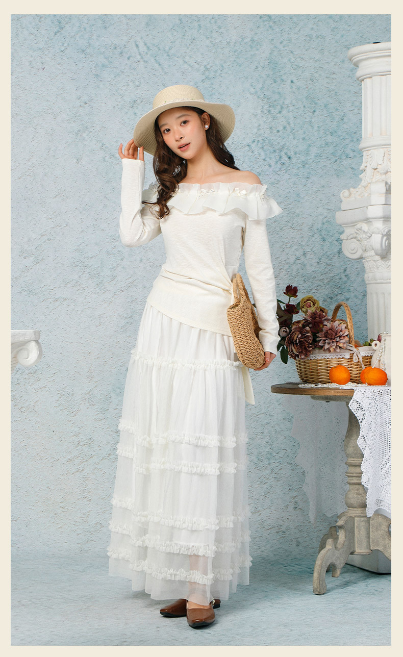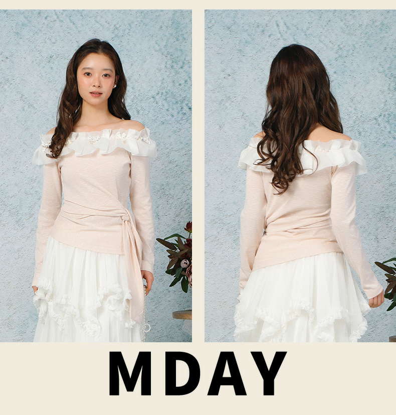 气质时尚温柔风花边一字肩上衣-纪念日百货门店同款169265979
