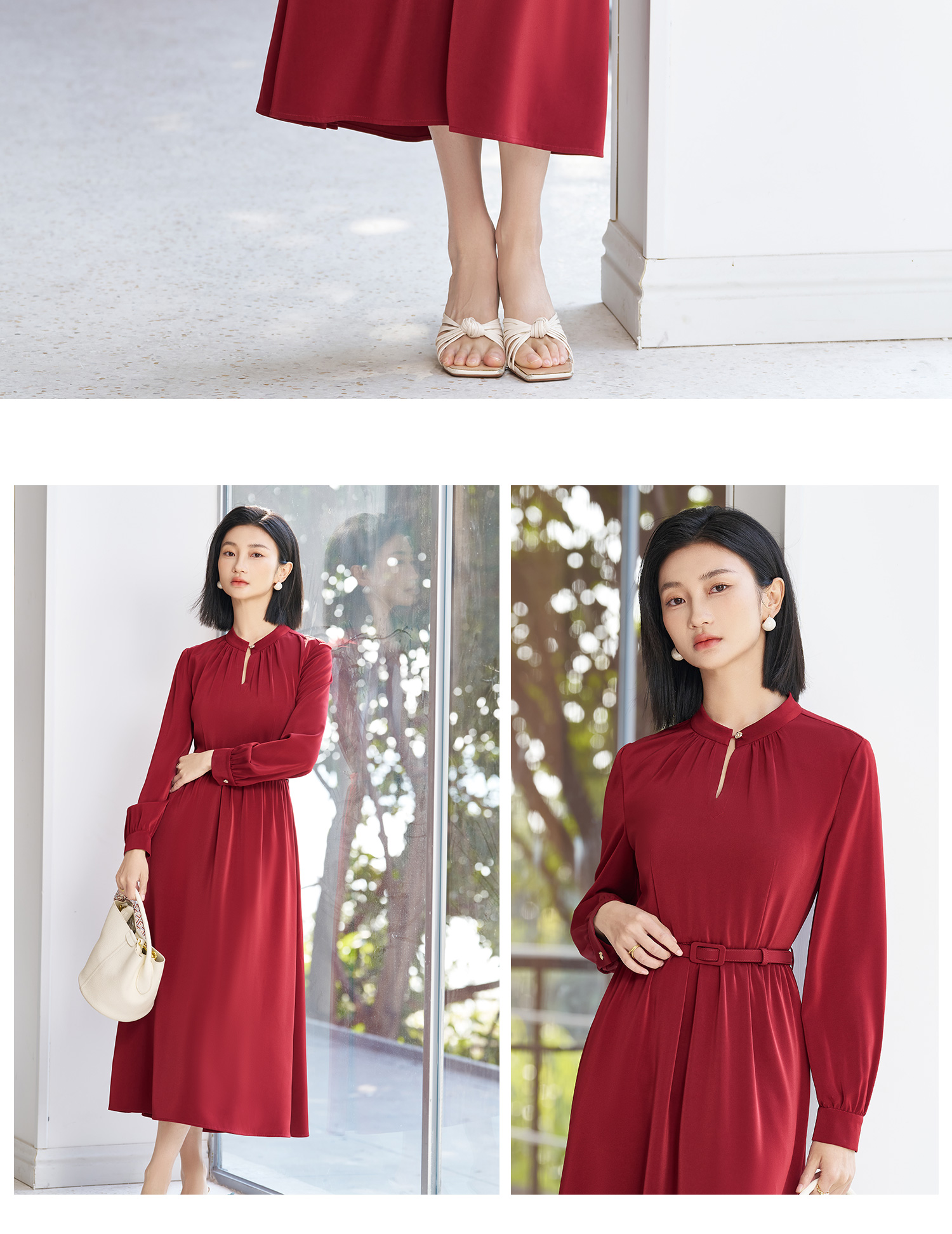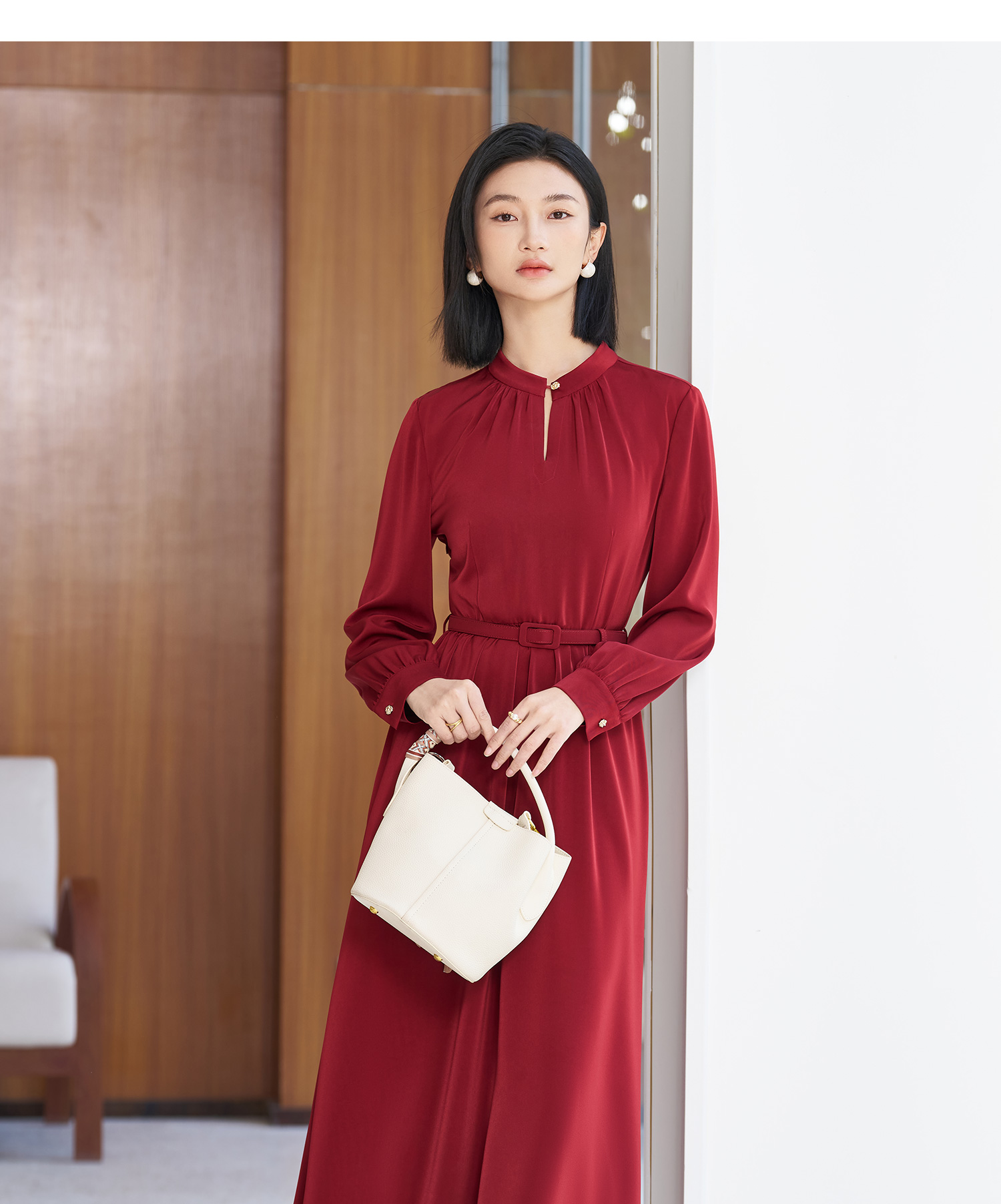剩S/M/L/XL 米思阳2026春季新款轻奢高级感珍珠光泽感连衣裙节日喜庆晚宴裙子5359
