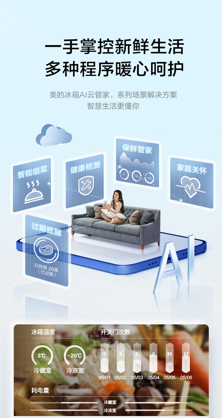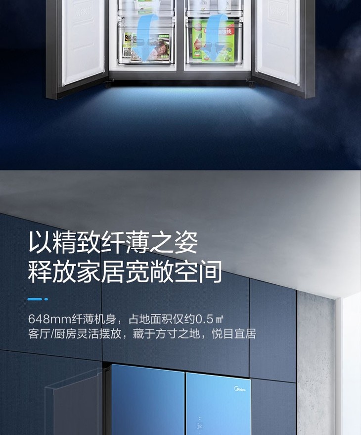 美的(Midea)475升十字对开门智能家电一级变频冰箱BCD-475WSGPZM(Q)