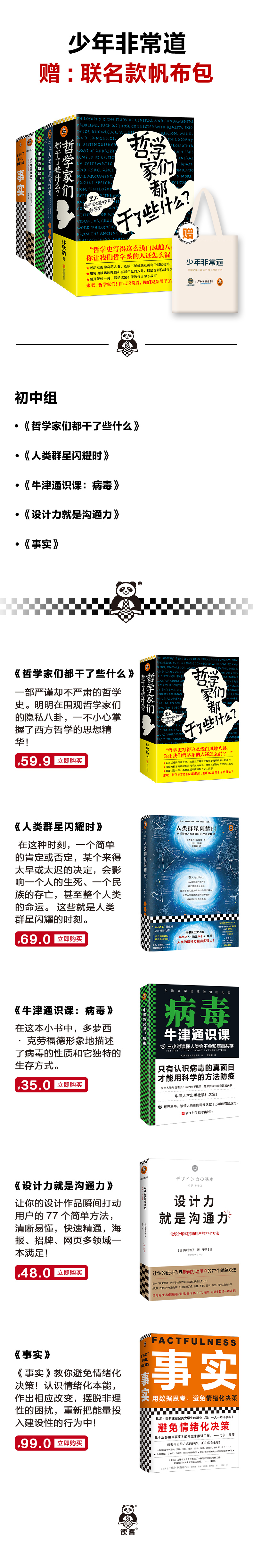 第五届少年非常道初中组系列 5套合集《哲学家们都干了些什么》《人类群星闪耀时》《牛津通识课:病毒》《设计力就是沟通力》《事实》 读客