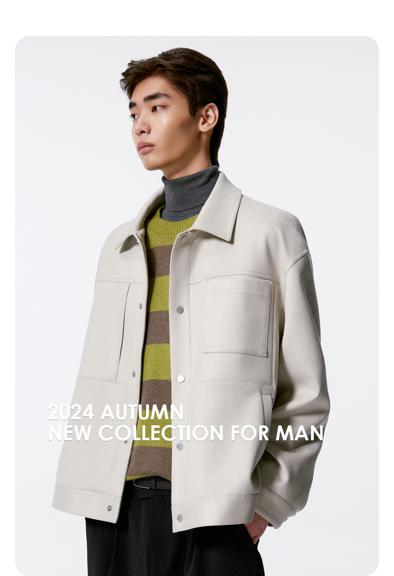 GXG男装 工装翻领仿麂皮夹克外套男24年秋热卖G24X213022