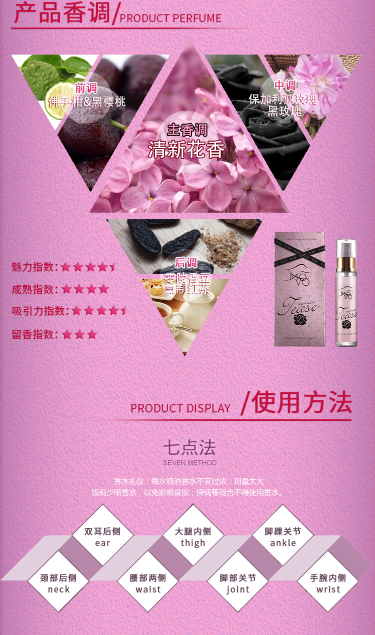 此香水属于欲望香水,适合在约会时、爱爱时使用,可使人心情放松、更好的享受当下。