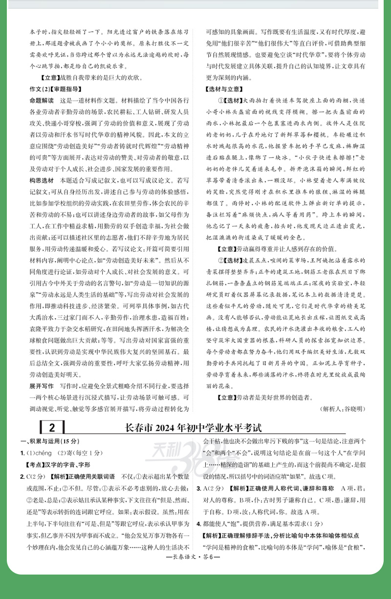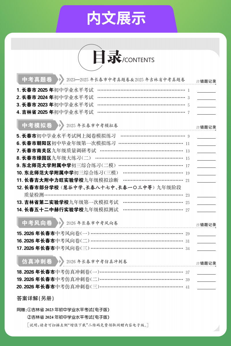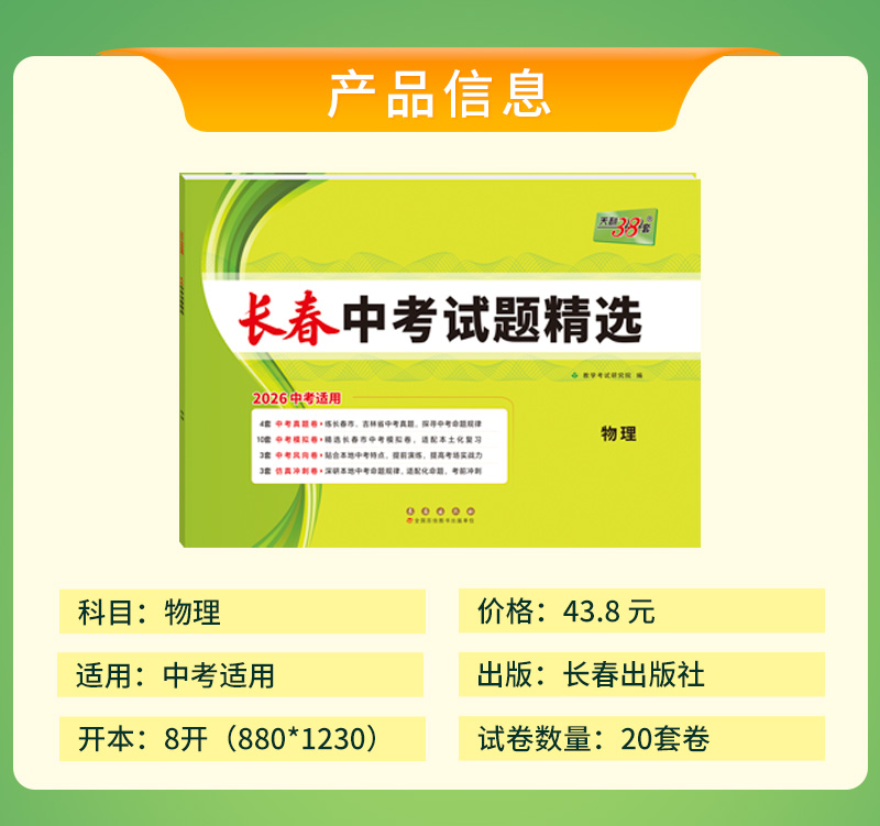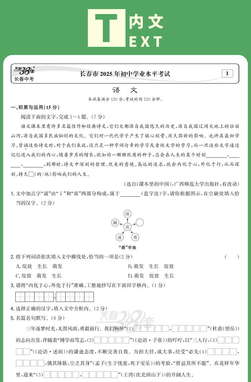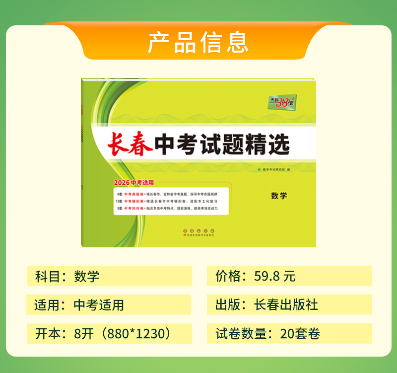 天利38套 2026长春中考试题精选 语文 数学 英语 物理 化学 生物 地理