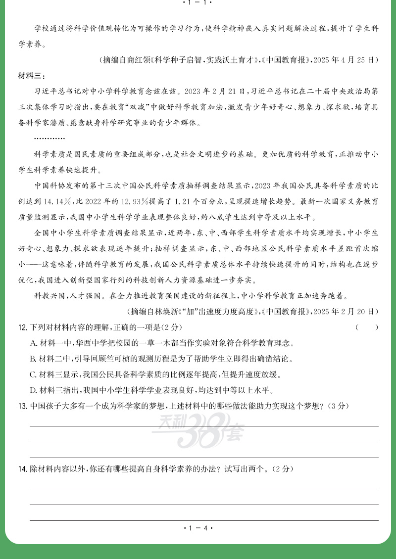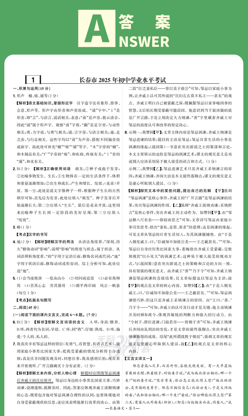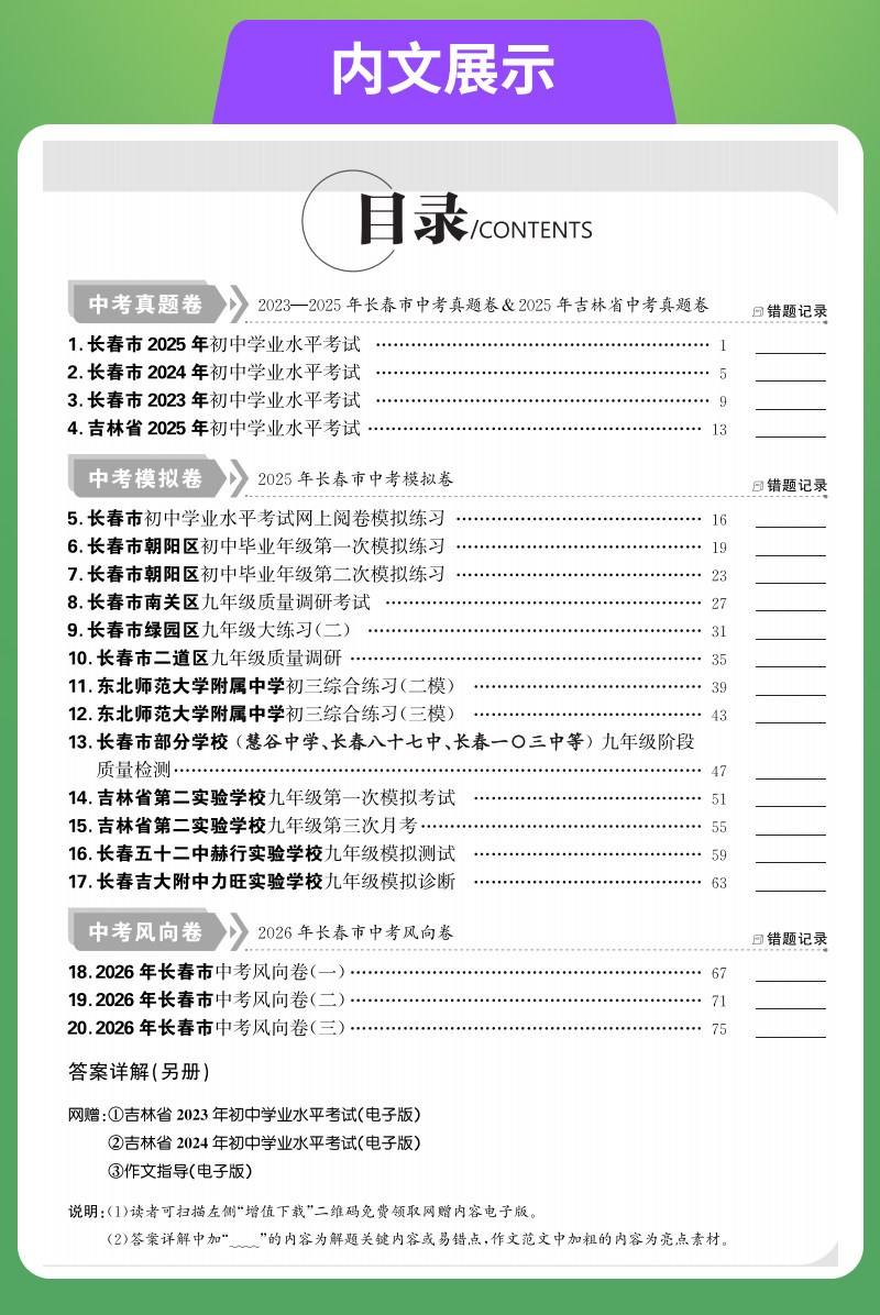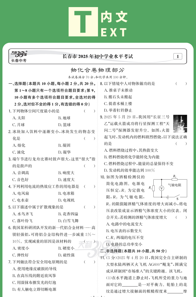 天利38套 2026长春中考试题精选 语文 数学 英语 物理 化学 生物 地理