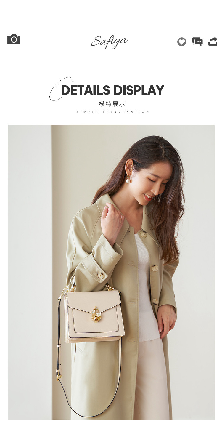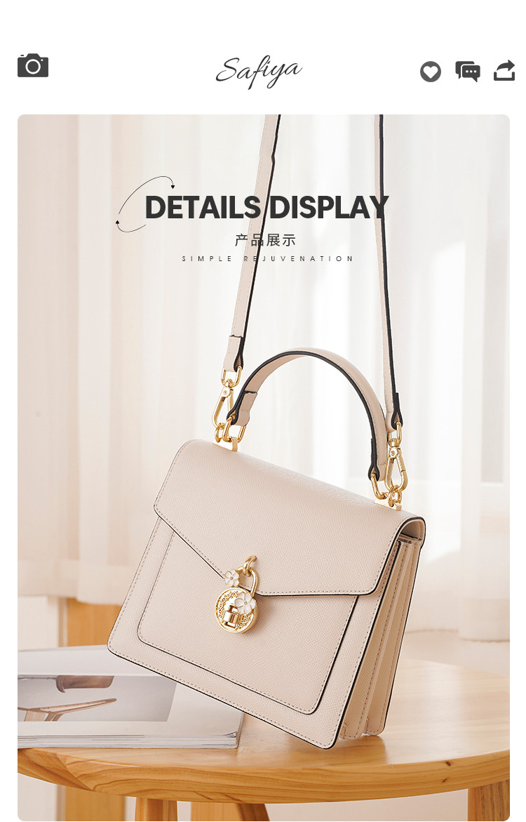 【包包专区】Safiya/索菲娅牛皮2022新款小方包单肩包包女斜挎包手提女包 SF953006Y