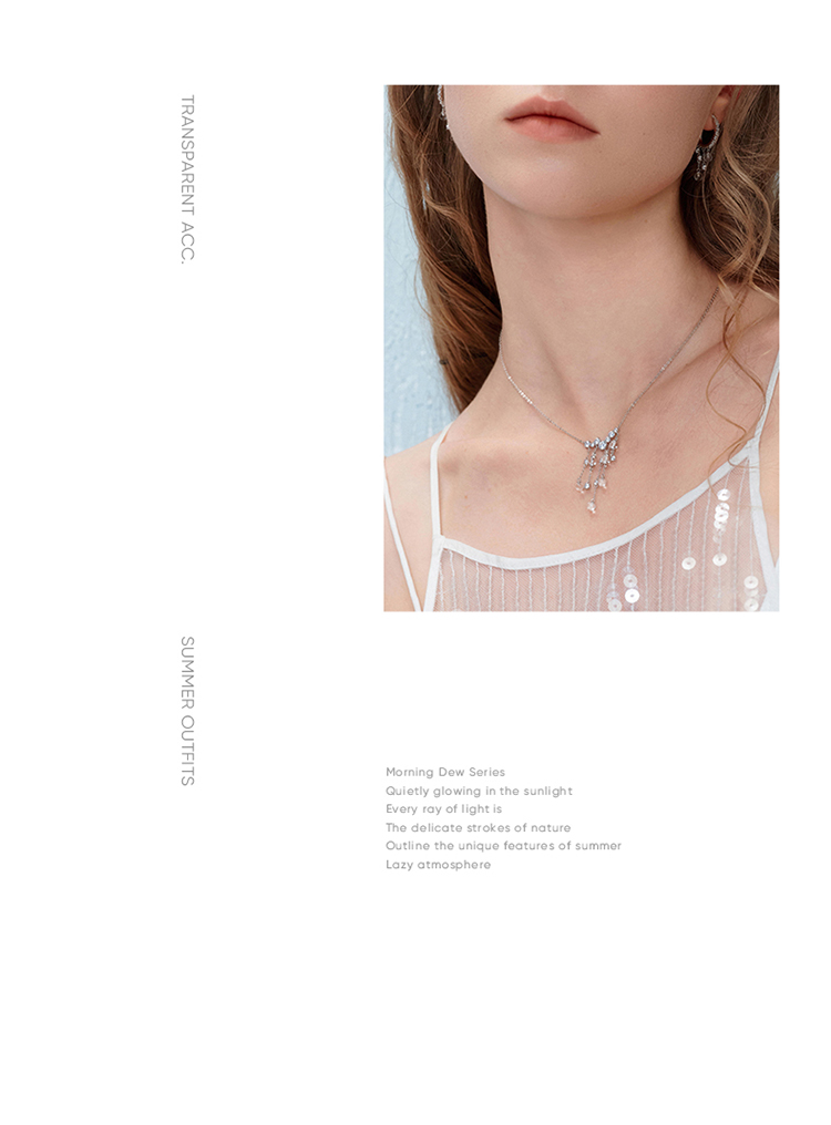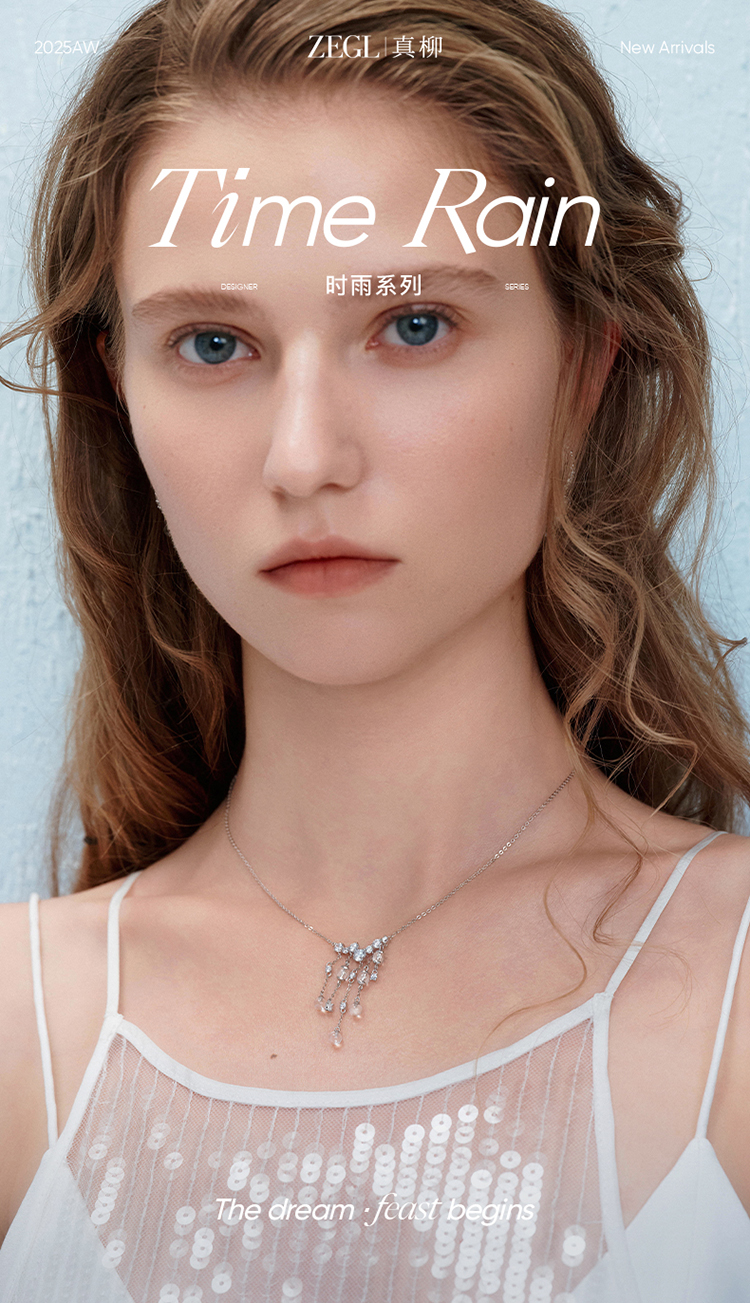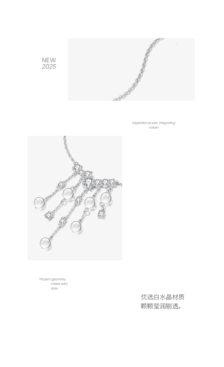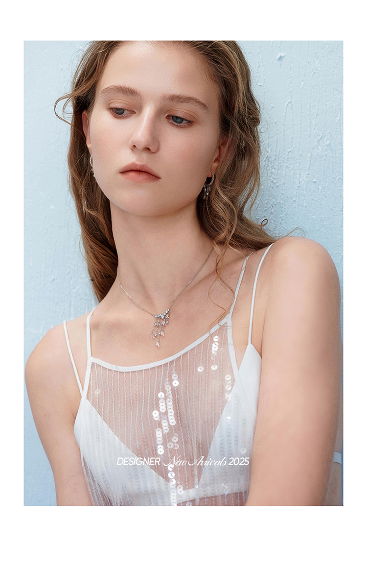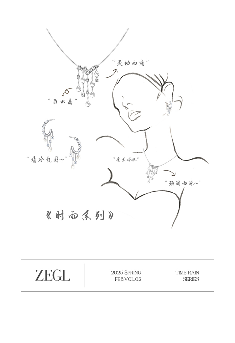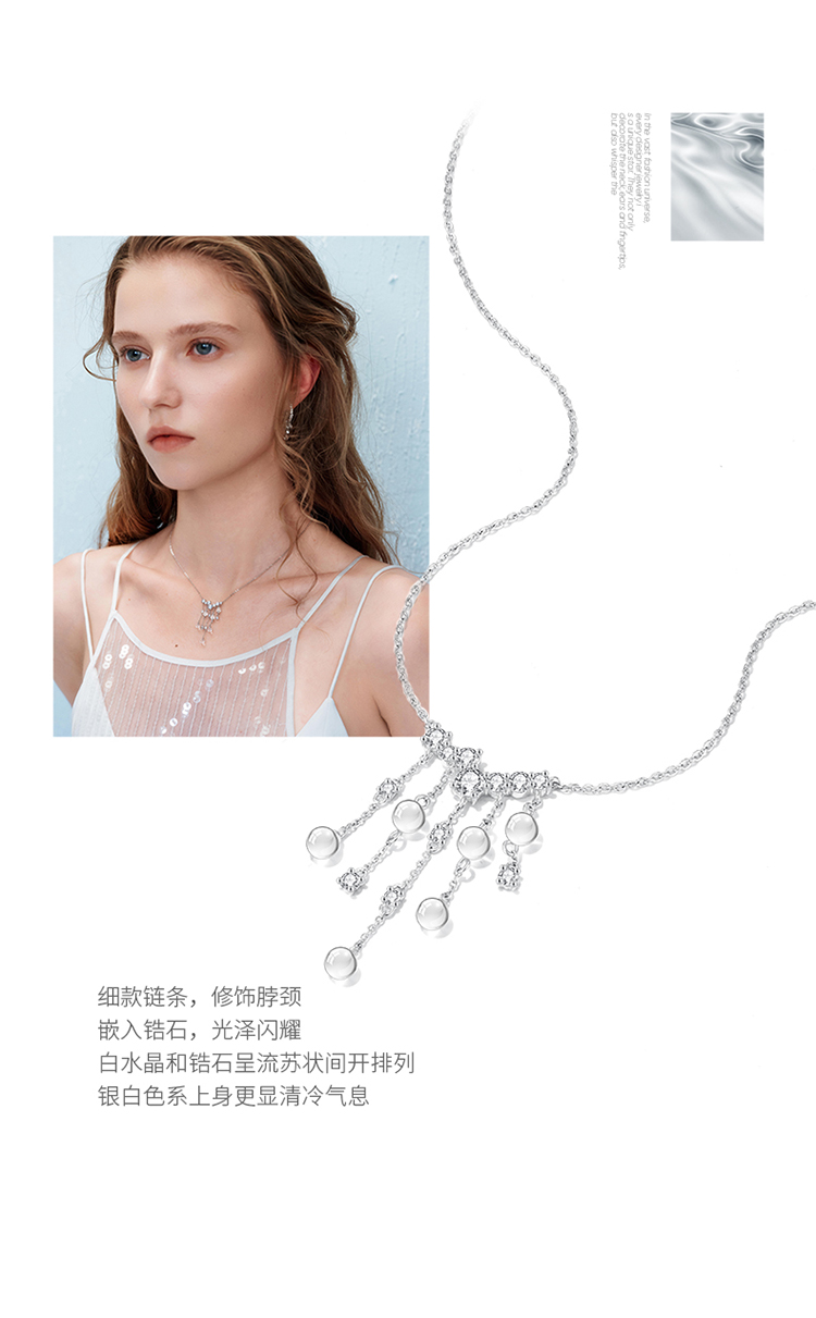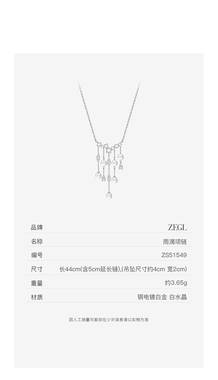 ZEGL真柳设计师时雨系列白水晶项链女款2025新款锁骨链春夏配饰品