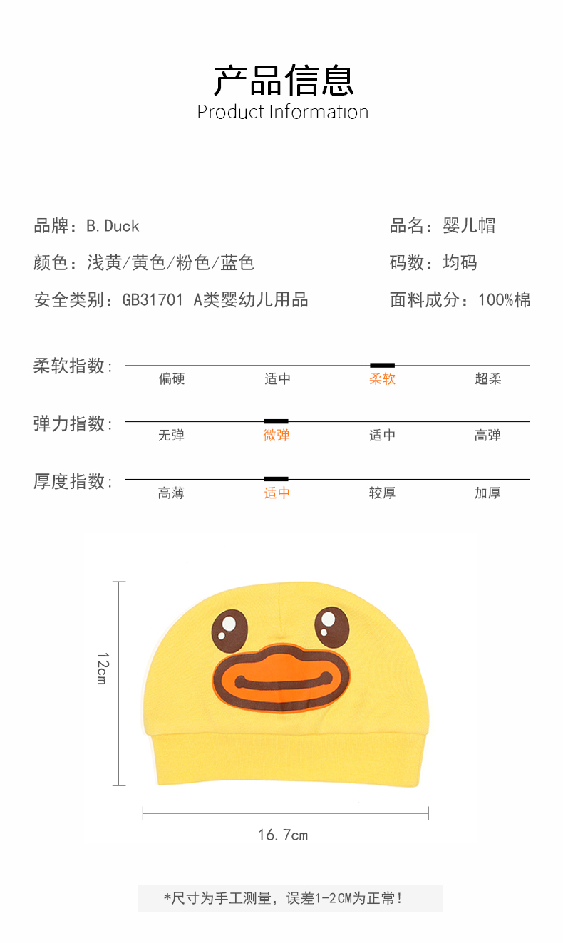 【专柜同款精品】婴儿帽子A类纯棉帽(两个装)