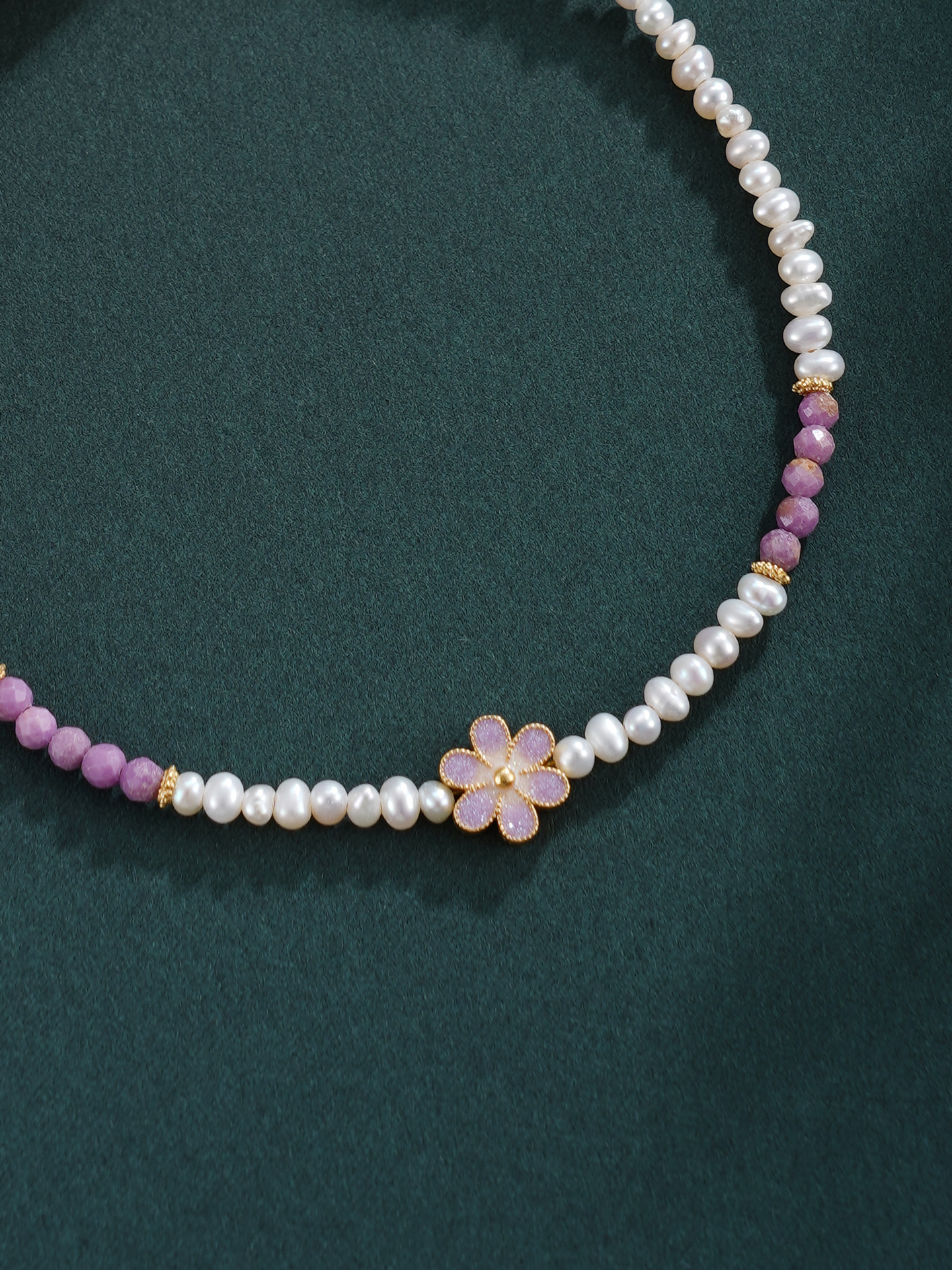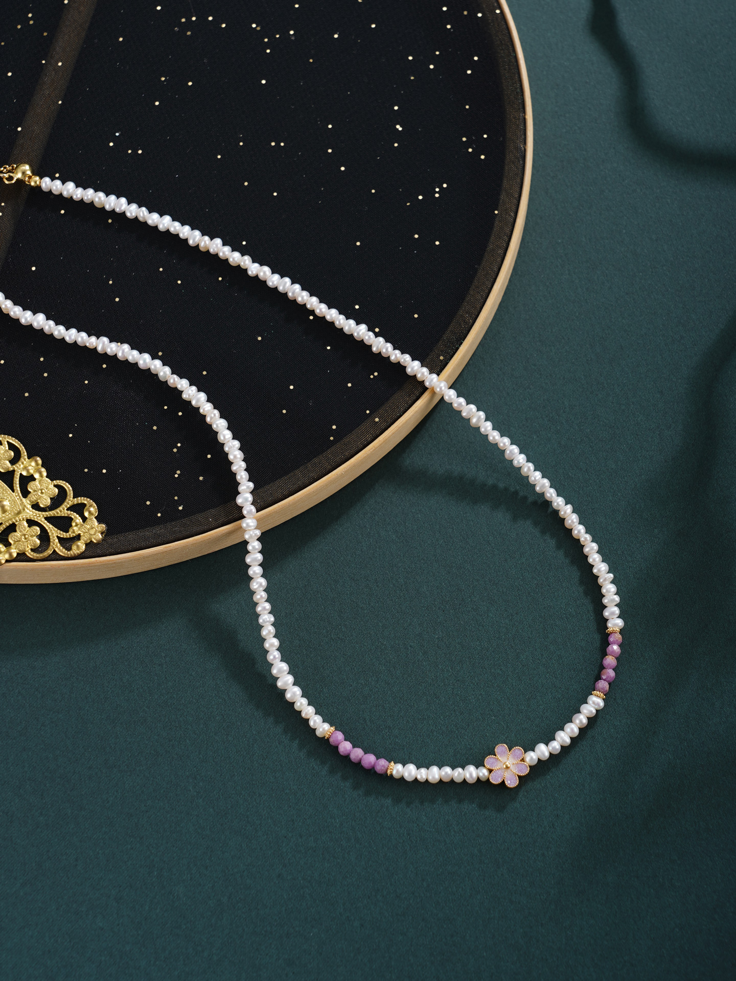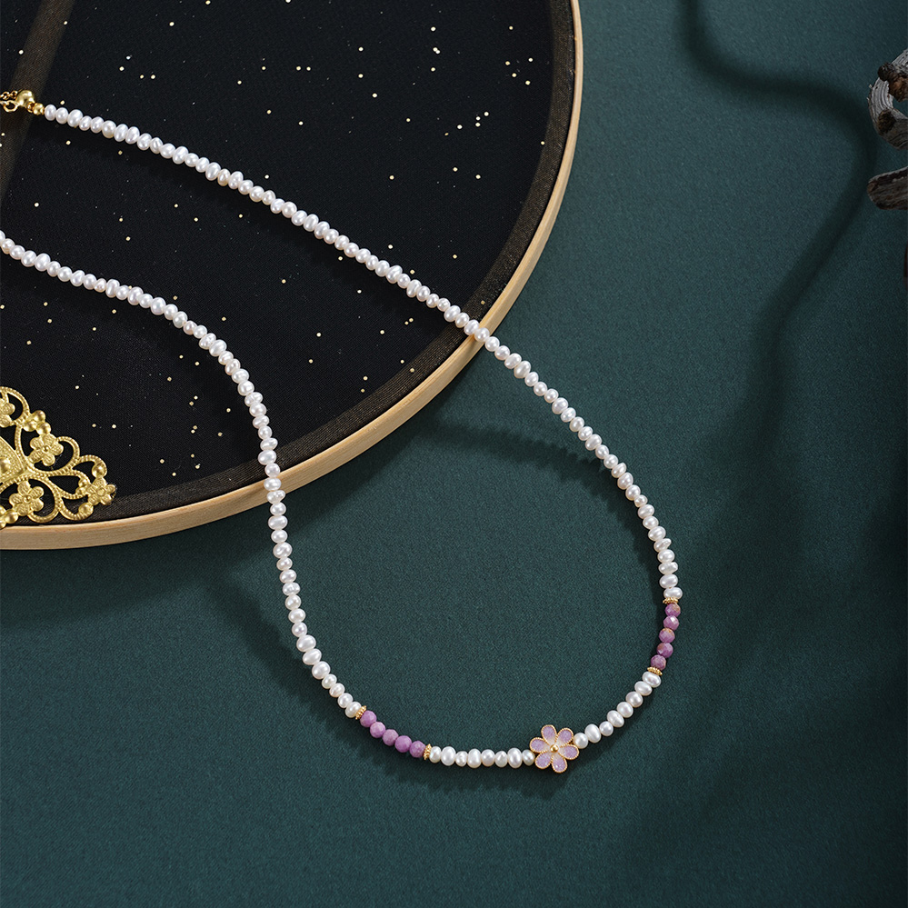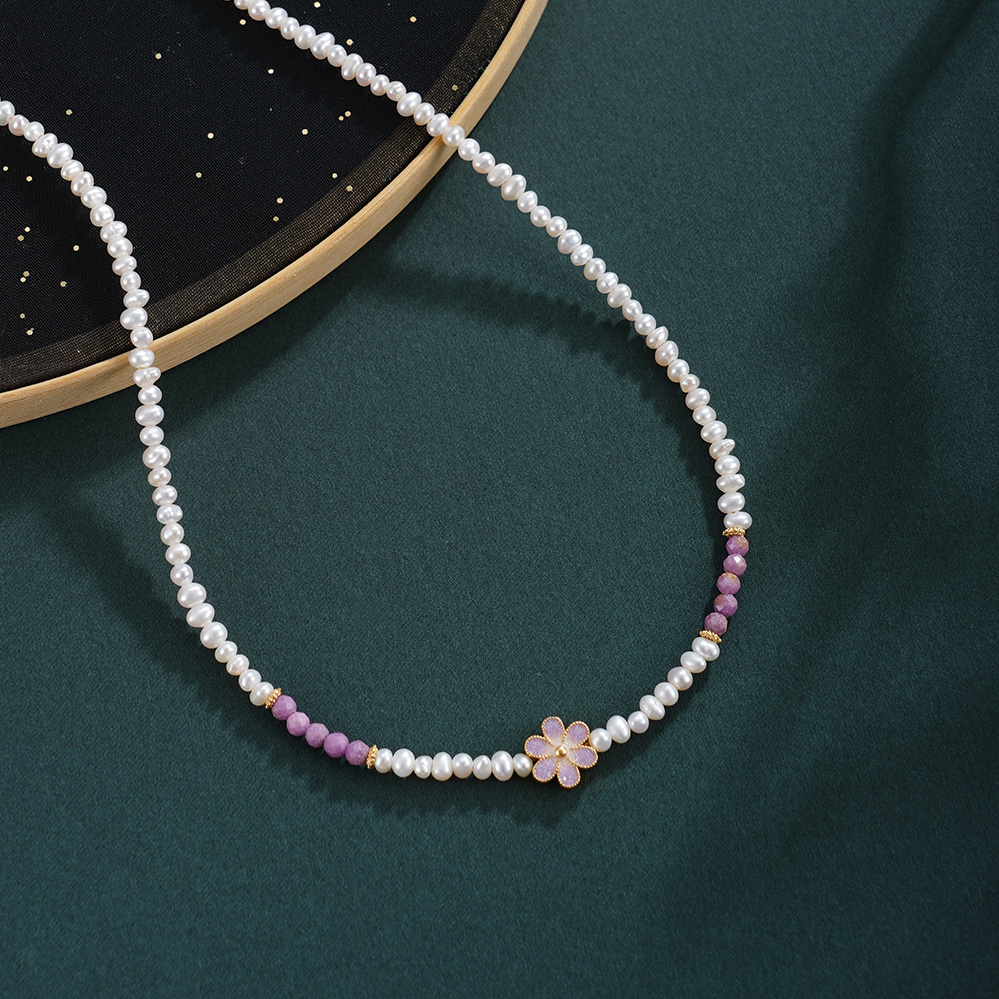 子佩集【紫梦花海】银S925珍珠惜王妃项链【SGN1050002】2*3mm珠紫花朵2601