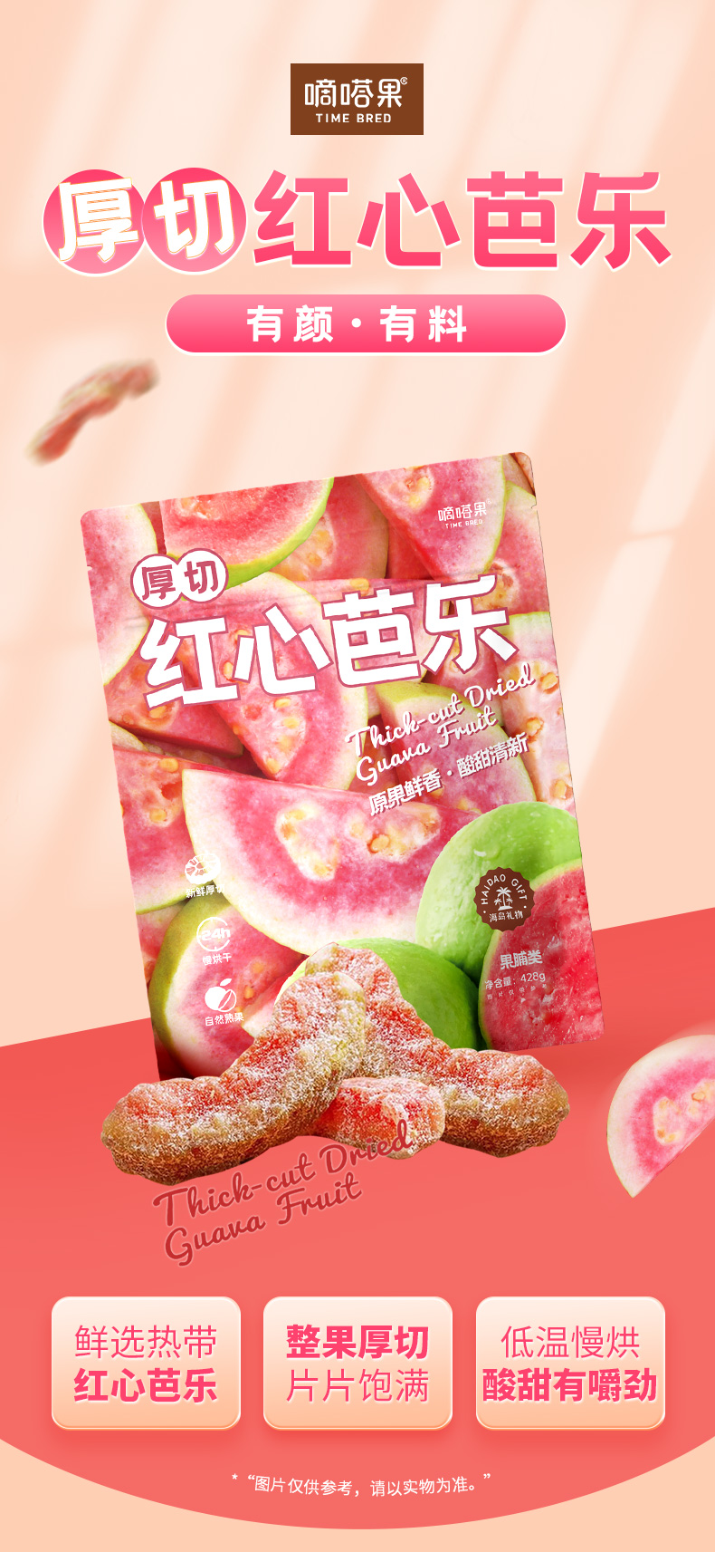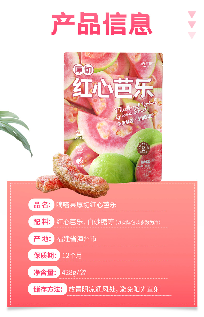 嘀嗒果厚切红心芭乐新鲜红心芭乐水果干蜜饯果脯休闲零食小吃428g