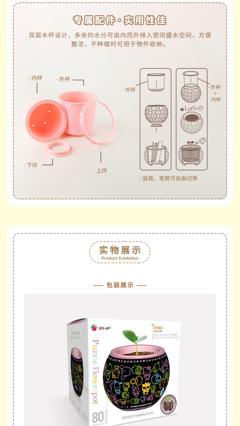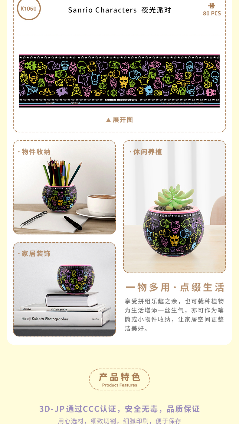 80片 盆栽拼图 K1060 Sanrio Characters 夜光派对