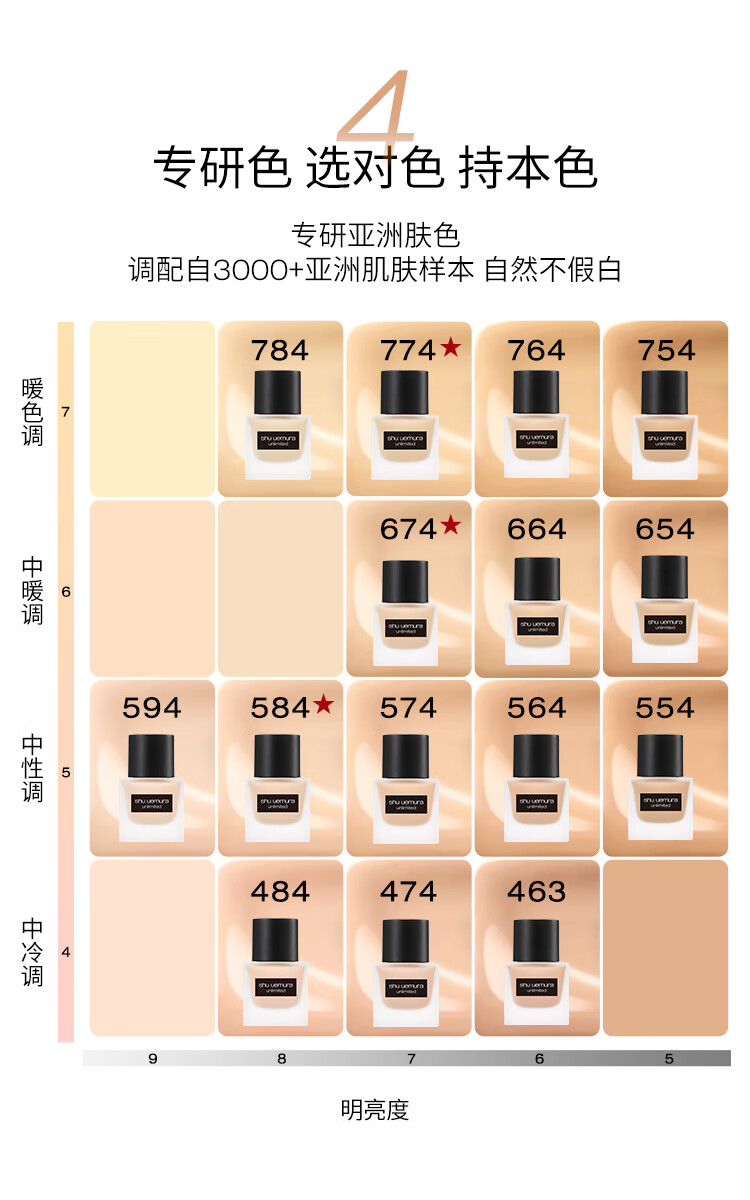 植村秀(Shu-uemura)小方瓶羽纱持妆粉底液574# 35ml 持色不暗沉 遮瑕轻薄控油自然服帖