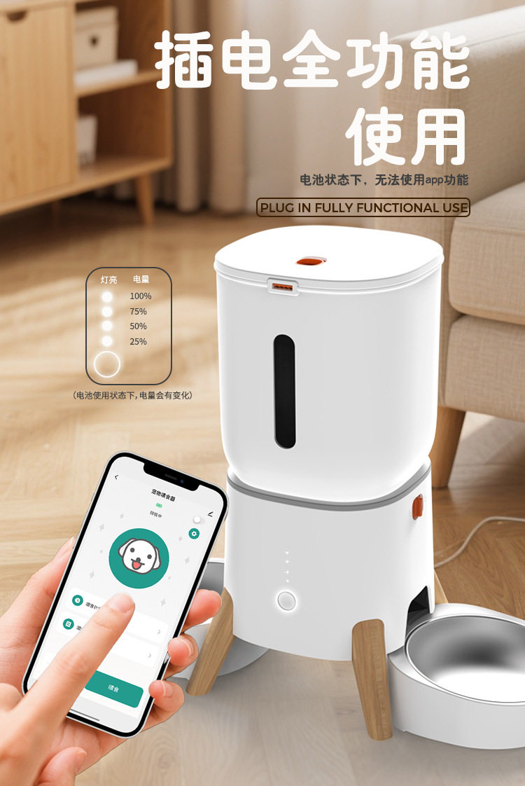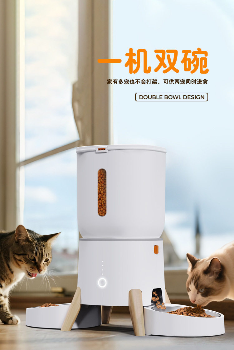 5L宠物智能喂食器 APP控制远程喂食机 一机双碗猫狗自动喂食器