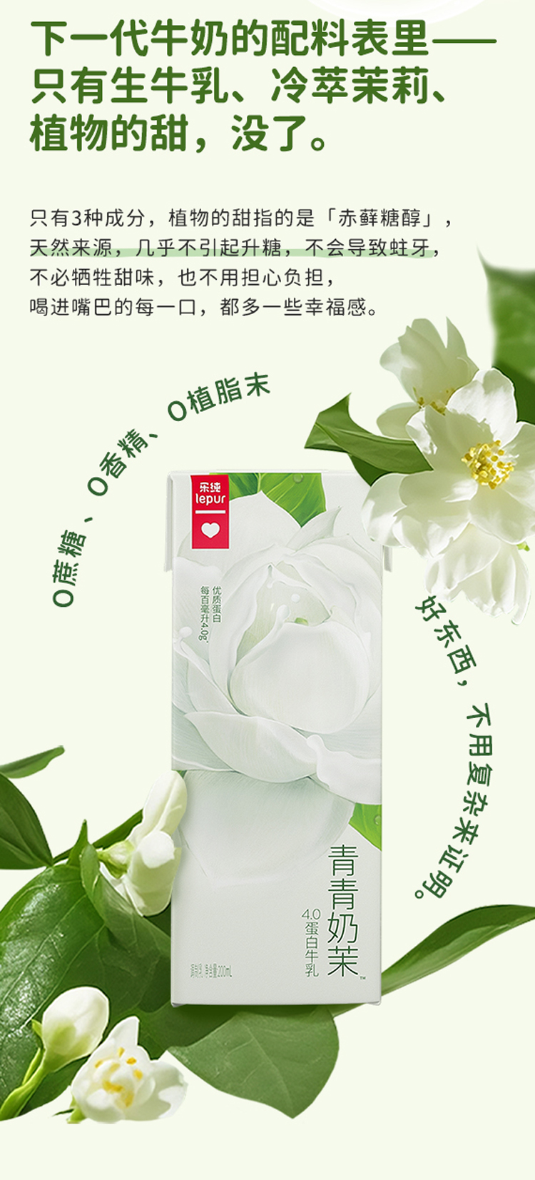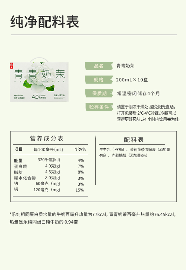 【乐纯】青青奶茉茉莉牛乳营养早餐牛奶整箱200ml*10盒