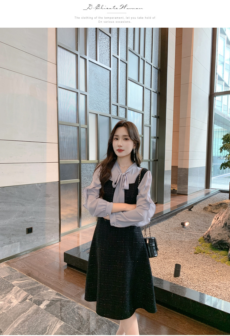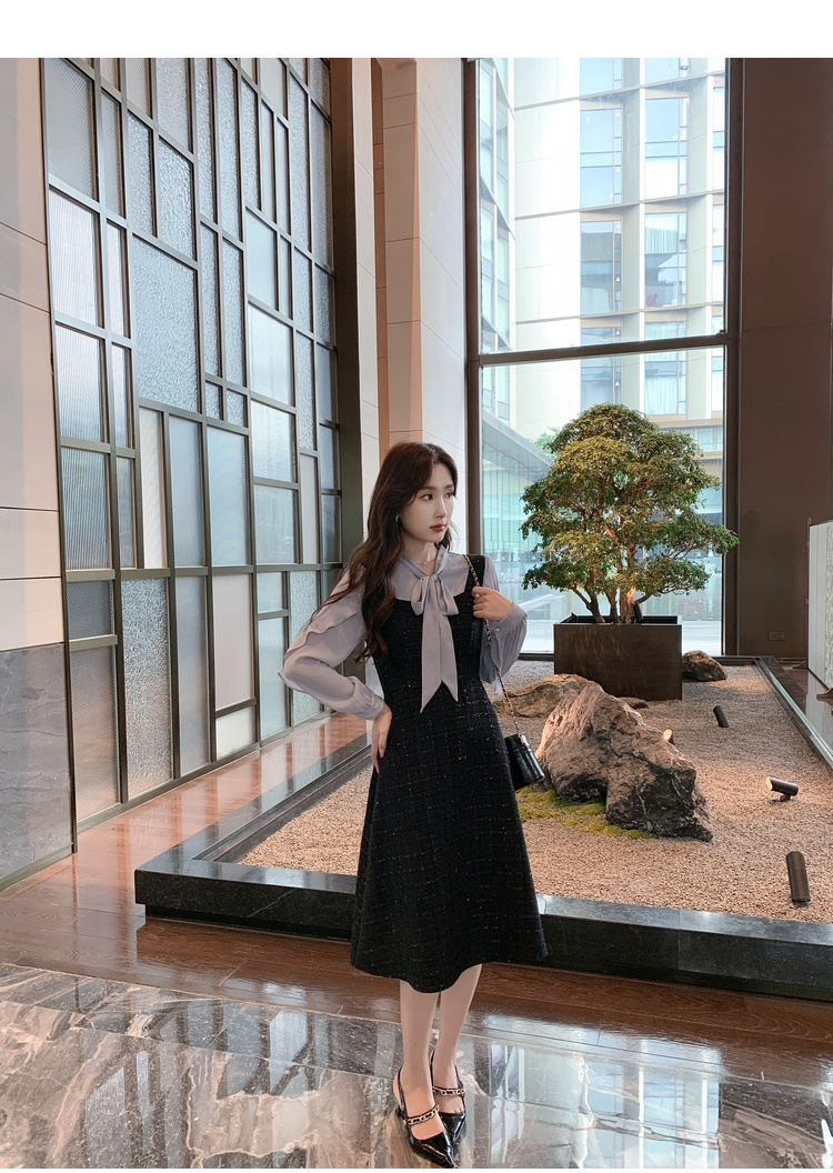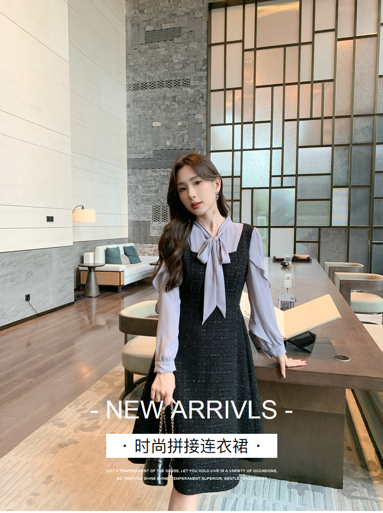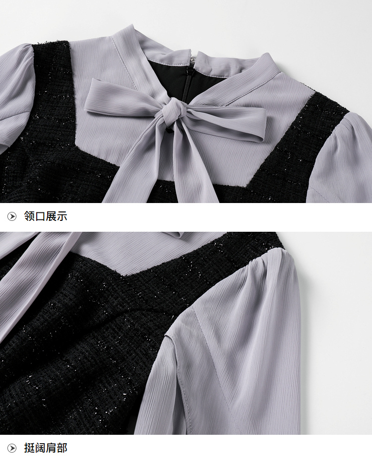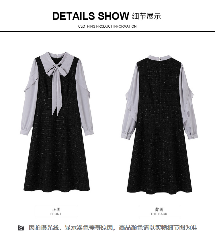 奢姿大码女装2024秋季减龄蝴蝶结绑带裙子胖妹妹假两件拼接连衣裙9943826599