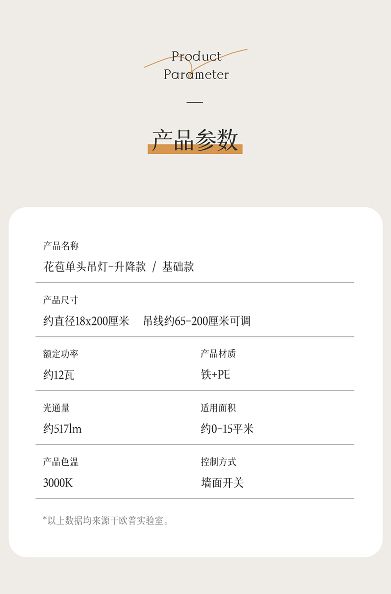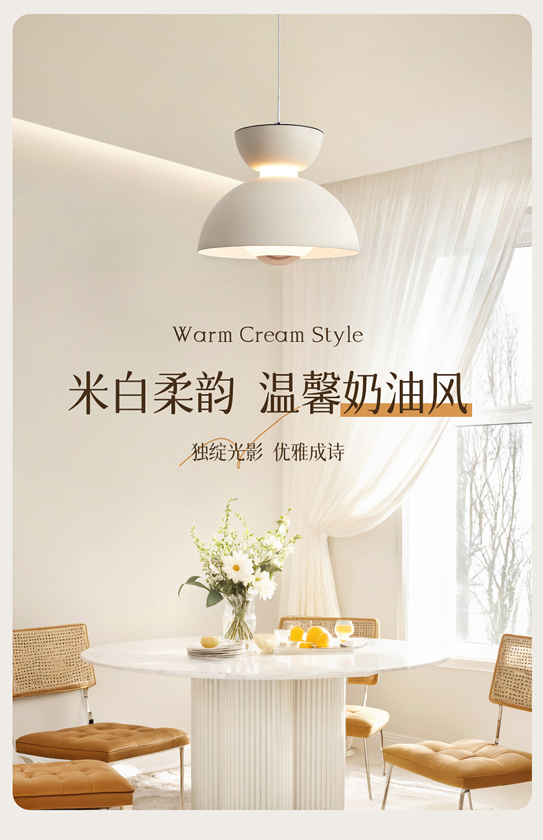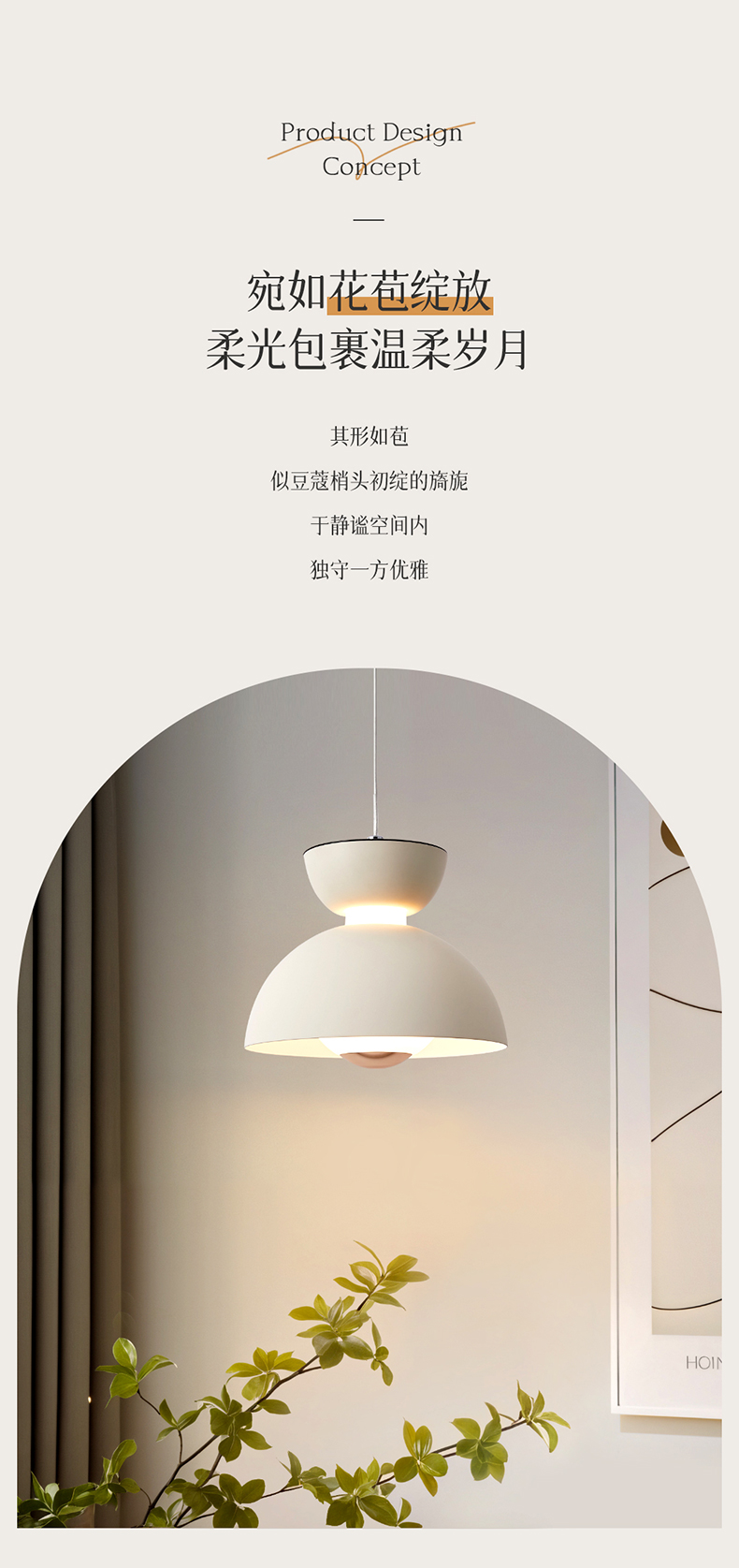 欧普(OPPLE)花苞床头吊灯奶油风单头吊线灯