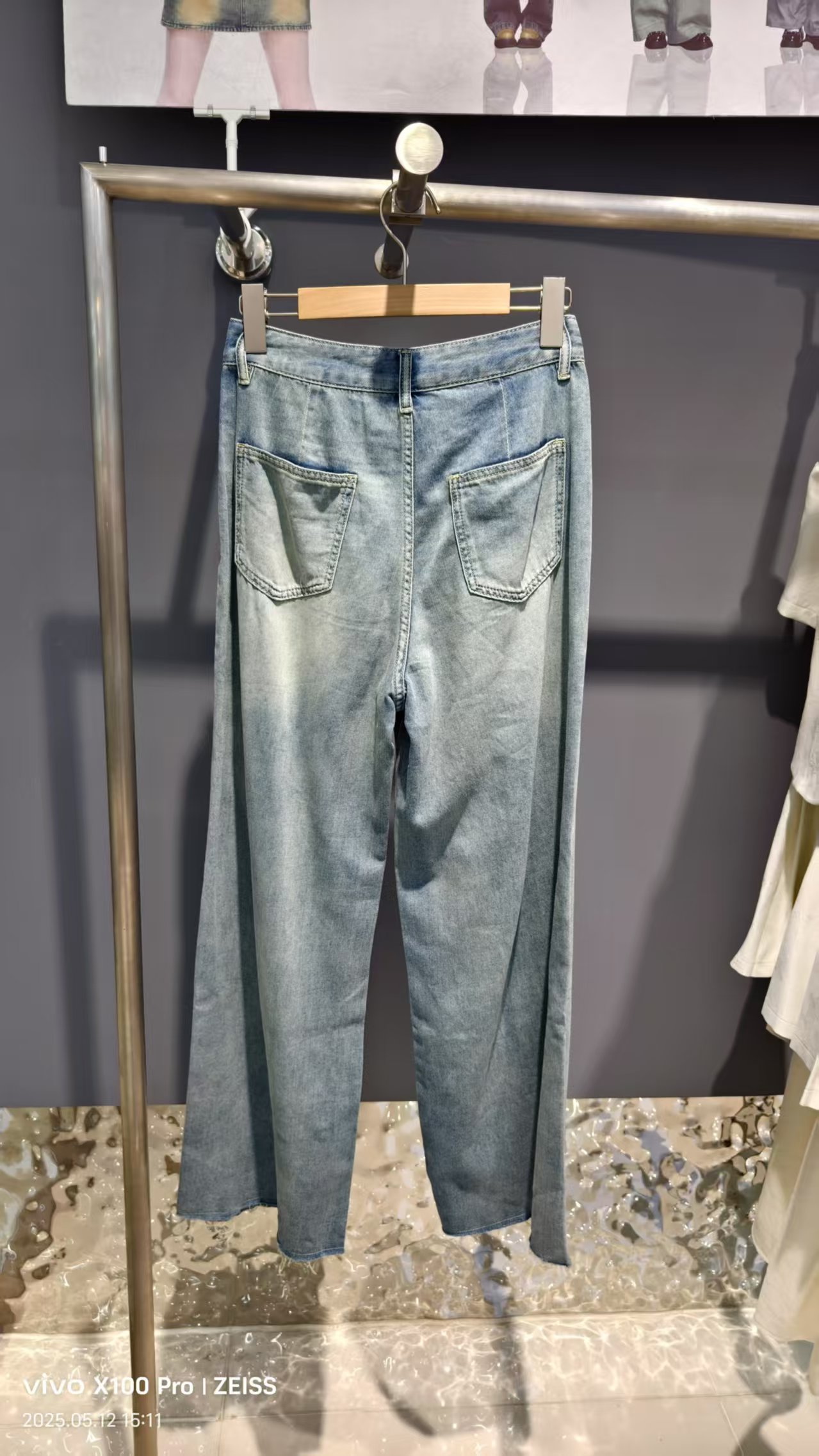 P&X设计师女装2024冬季阔腿牛仔长裤女高腰休闲拖地裤 824410134 蓝色