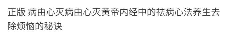 病由心灭--黄帝内经中的祛病心法养生去除烦恼的秘诀,刨根溯源。
