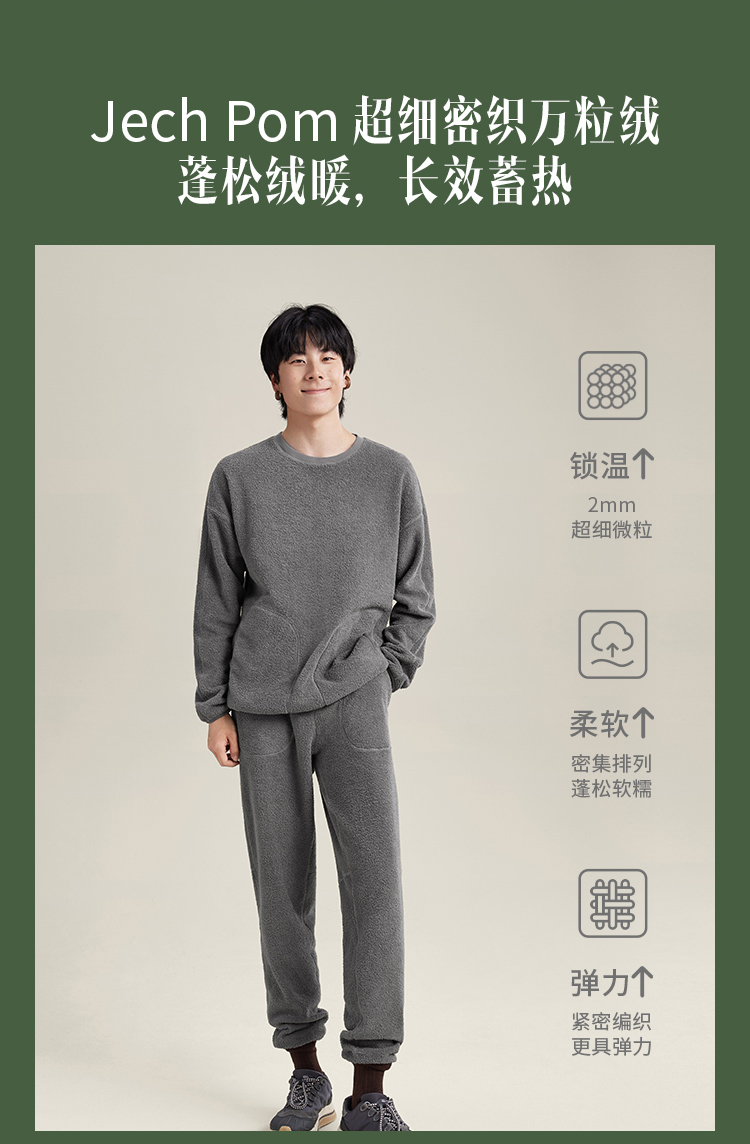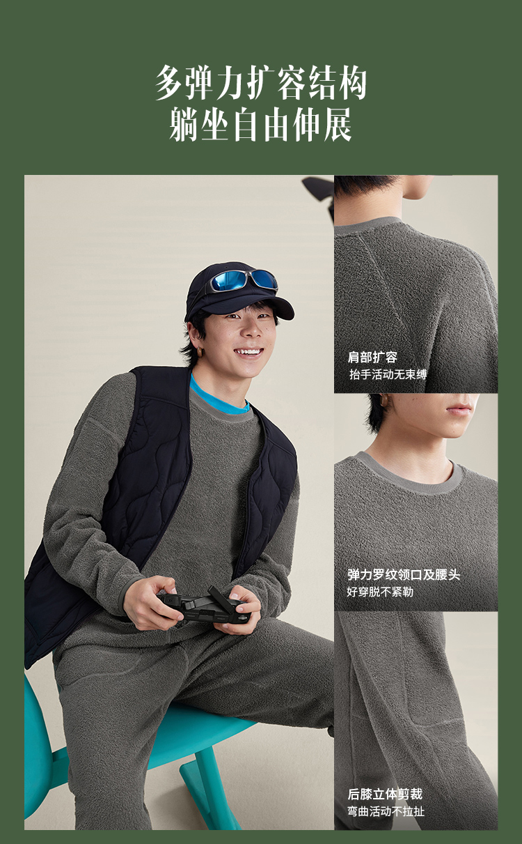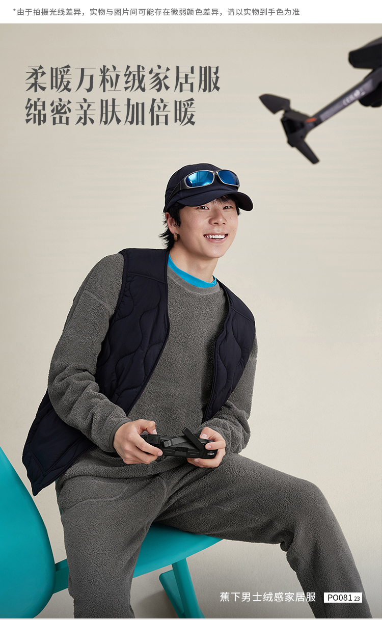 蕉下男士绒感家居服PO08123弹力宽松舒适保暖睡衣套装秋冬万粒绒