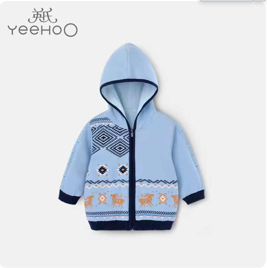 英氏儿童毛衣外套男宝宝连帽拉链针织衫厚2020新款YRWGJ30053A01