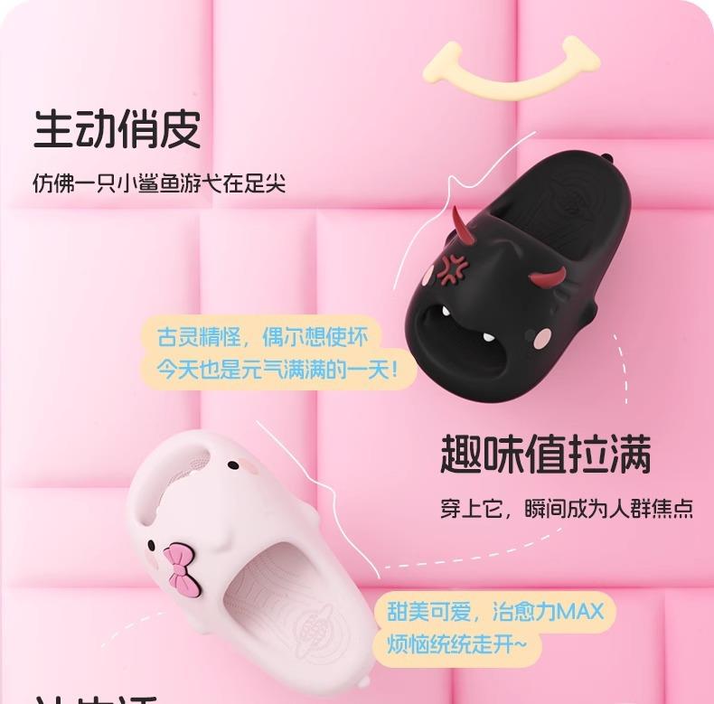 EVA卡通小萌鲨拖鞋女夏季新款趣味可爱鲨鱼凉拖鞋女士外36-41★娃娃优选