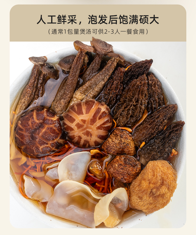 5包 七珍菌菇包 70g/包 A-5298(羊肚菌、姬松茸、香菇、鹿茸菇、虫草花、猴头菇、白玉耳)