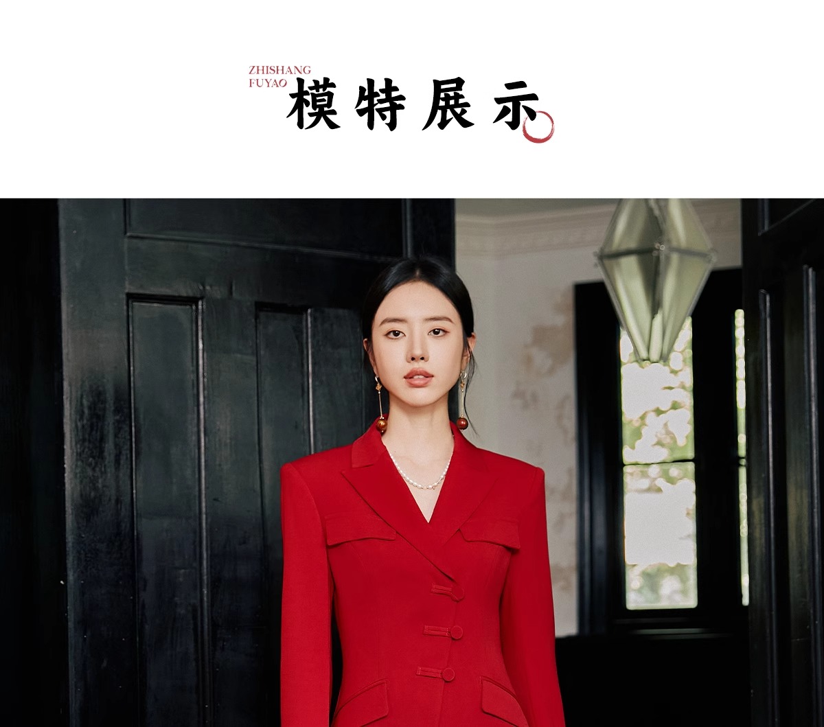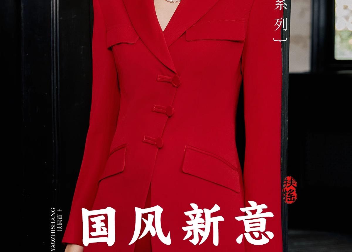 IWY/扶摇系列 高级感红色西装套装女秋冬国风西服外套年会主持职业装 FYCP517