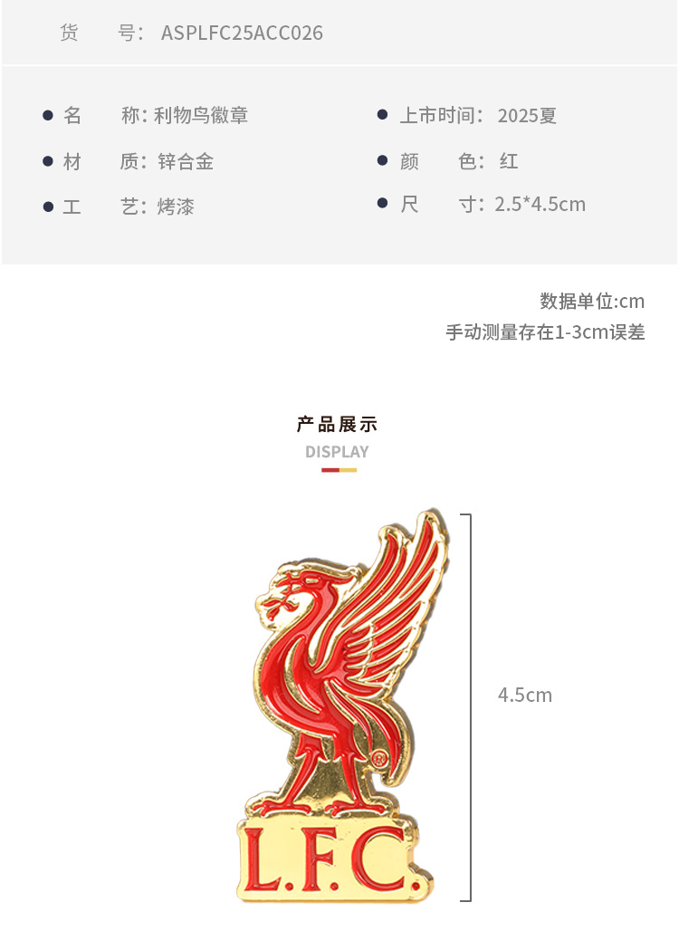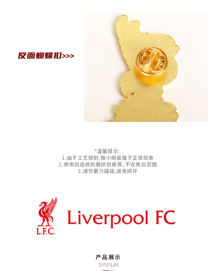 【官方正版】利物浦俱乐部 | 红金利物鸟胸针设计感徽章配饰