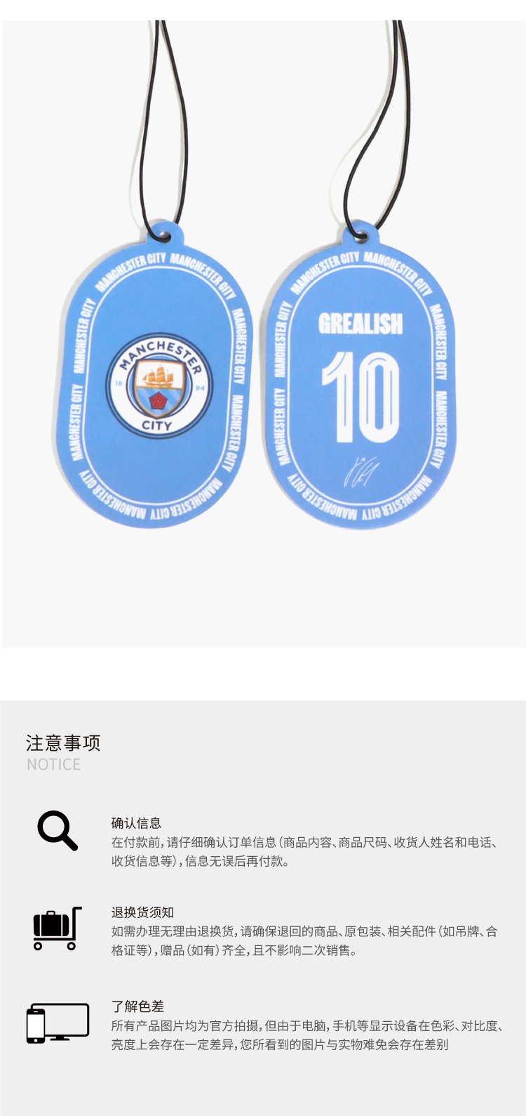 【官方正版】曼城俱乐部 | 球员印号香薰挂片球迷车载家居留香