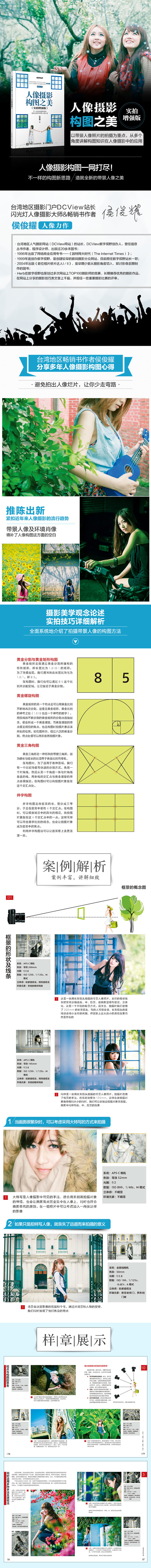 台湾地区人气摄影网站(DCView网站)的站长、DCView数字视野创办人、闪光灯人像摄影大师、畅销书作者侯俊耀分享多年人像摄影构图心得,助你奠定构图基础本书在台湾地区被誉为“第1本带景人像构图思考力指南”