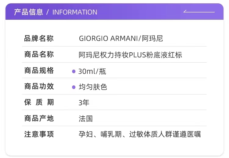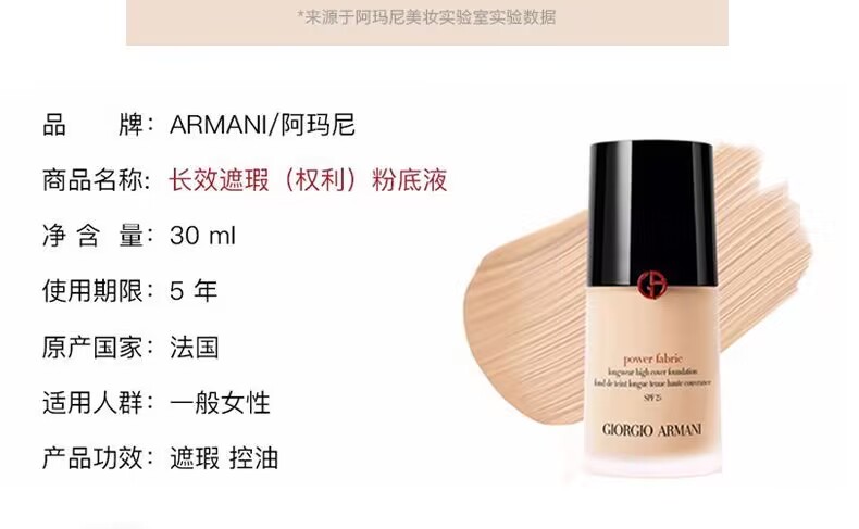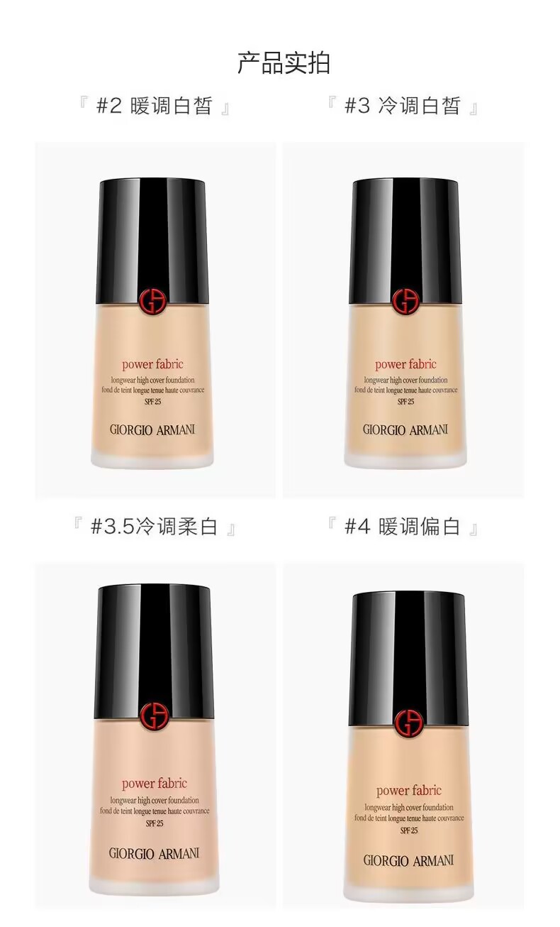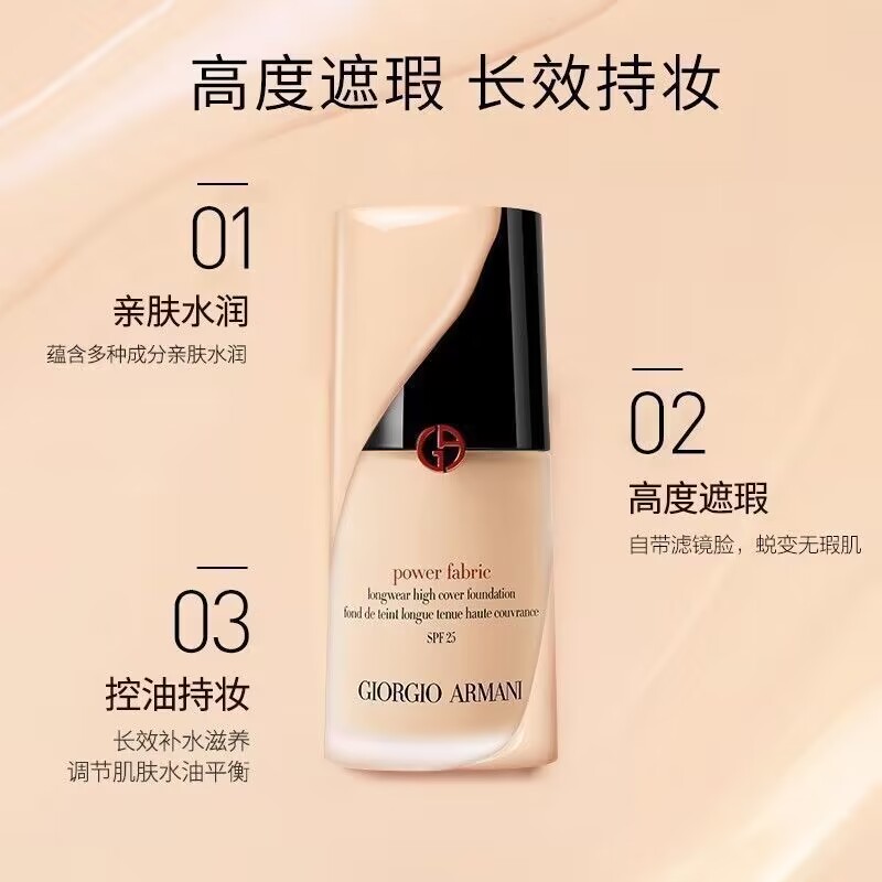 阿玛尼权利粉底液 油皮亲妈 #2暖白色(适合白皙肤色) #3冷白色(适合白皙肤色)防水防汗不脱妆油皮控油遮瑕