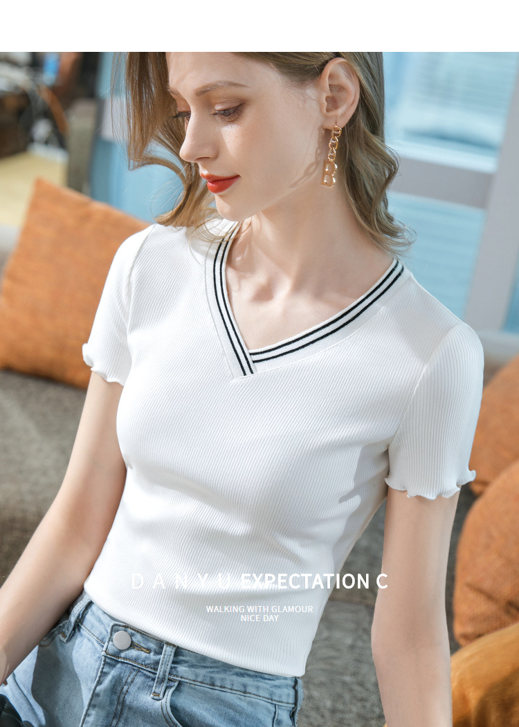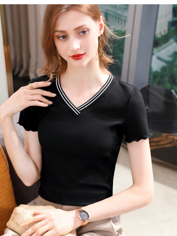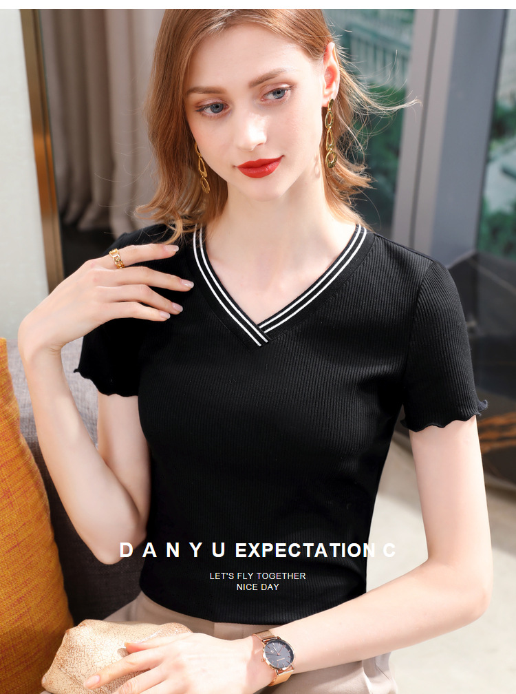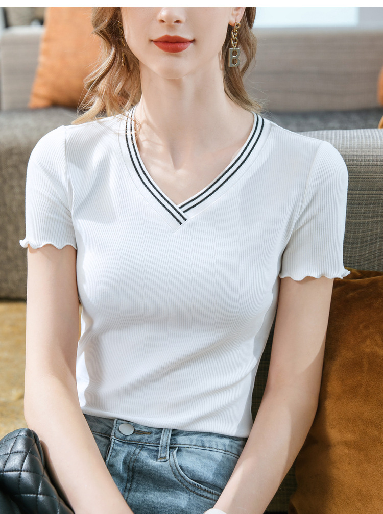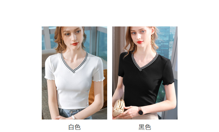 时尚撞色v领,棉体恤减龄木耳边上衣SG-T2C0139