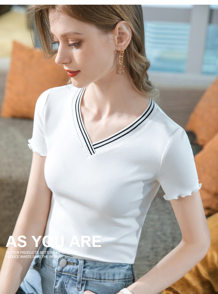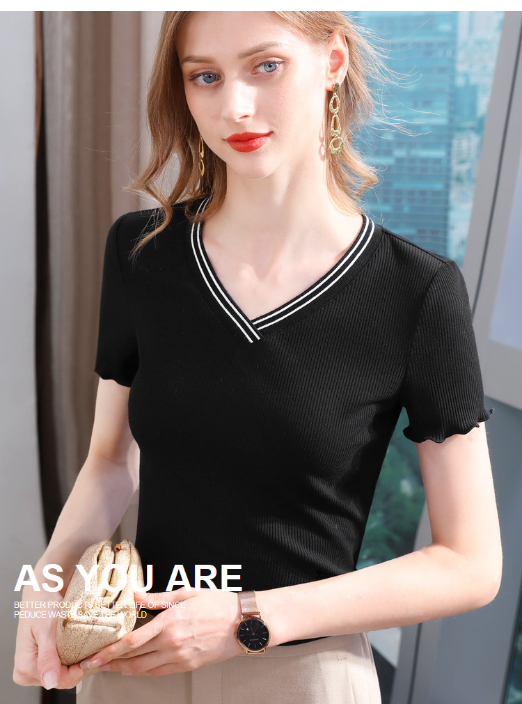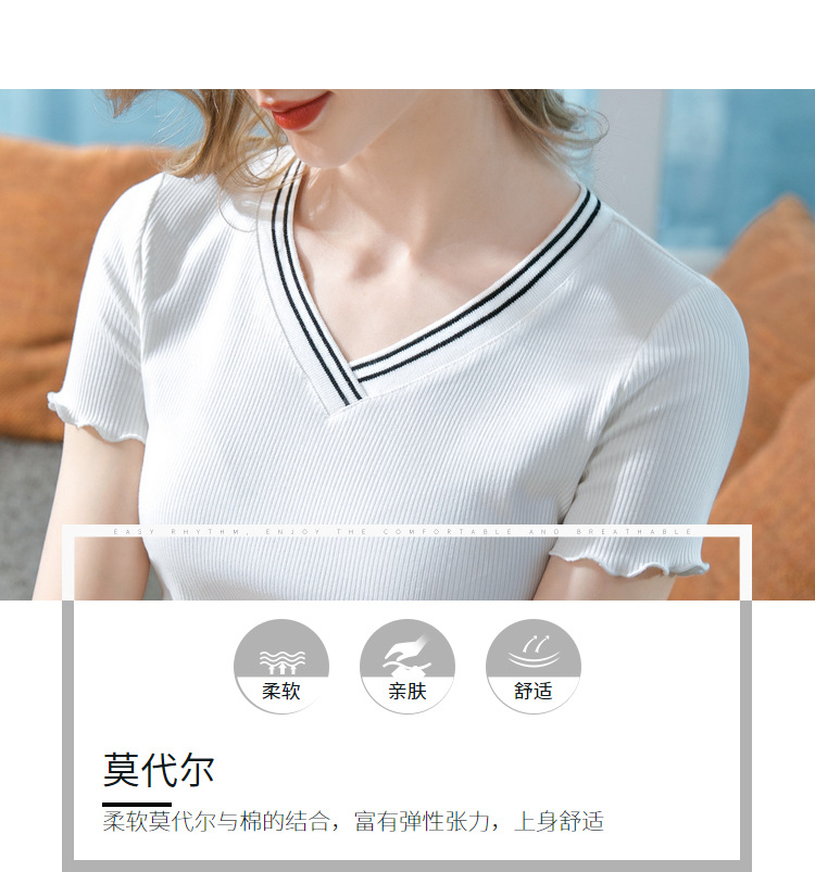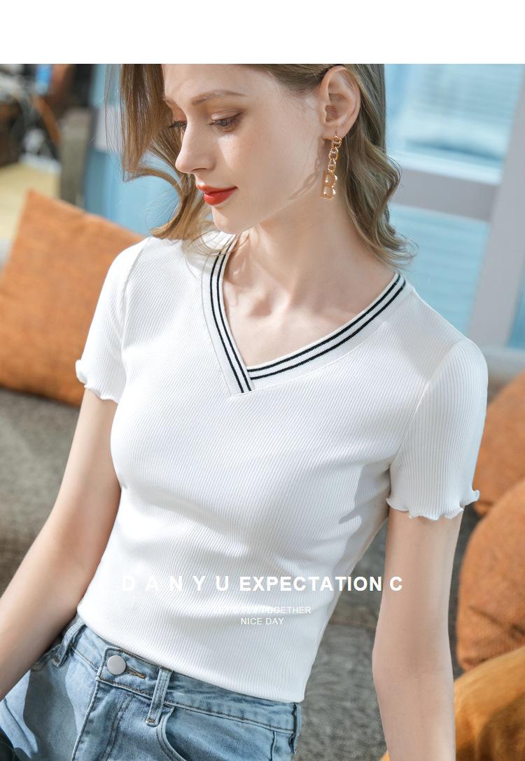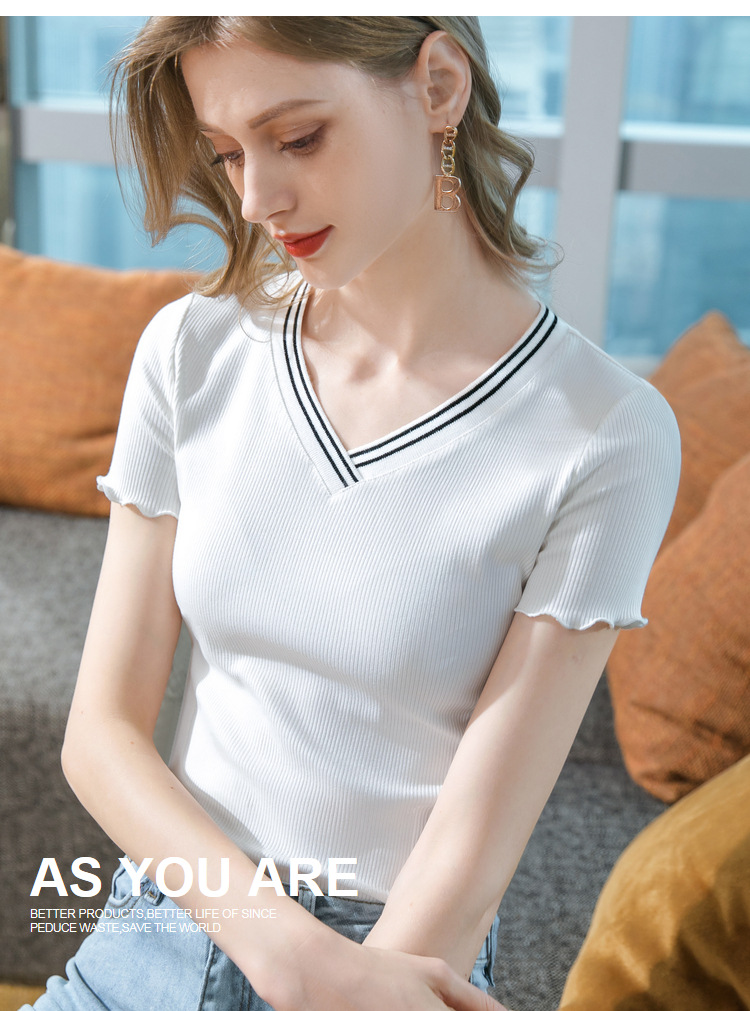 时尚撞色v领,棉体恤减龄木耳边上衣SG-T2C0139